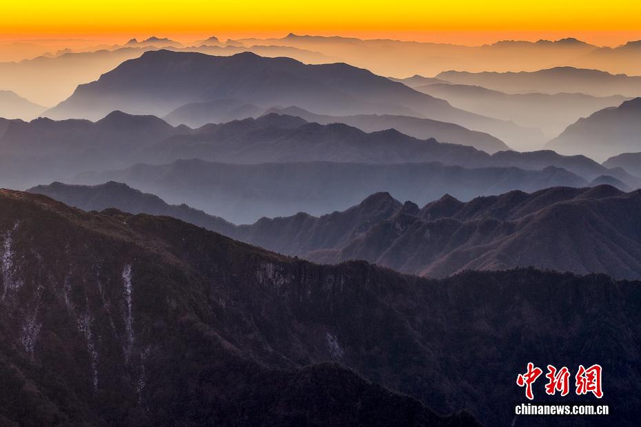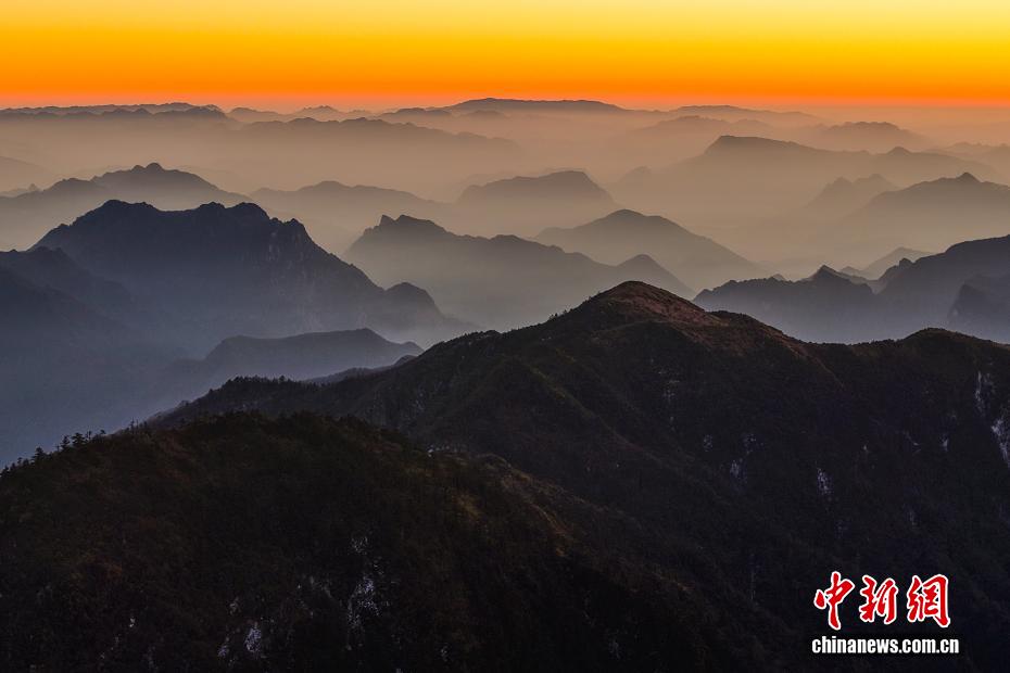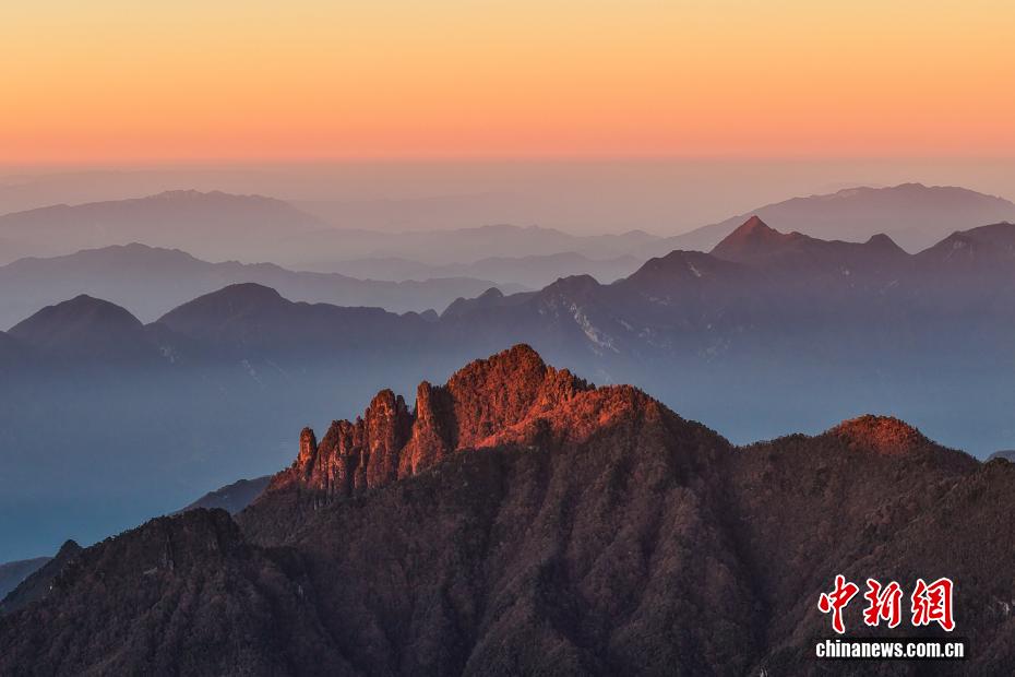 近日,在湖北省巴東縣小神農架,初升的朝陽穿過薄霧,將柔和的陽光灑在連綿的原始森林上,山巒在晨光中顯現出豐富的層次與輪廓,宛如一幅絕美的油畫。小神農架地處神農溪上游,海拔3005米,為大神農架姊妹峰,區域內有連綿山勢與縱橫溝壑,夏季云霧繚繞,冬季積雪覆蓋。圖為清晨的陽光照射在山巒間。