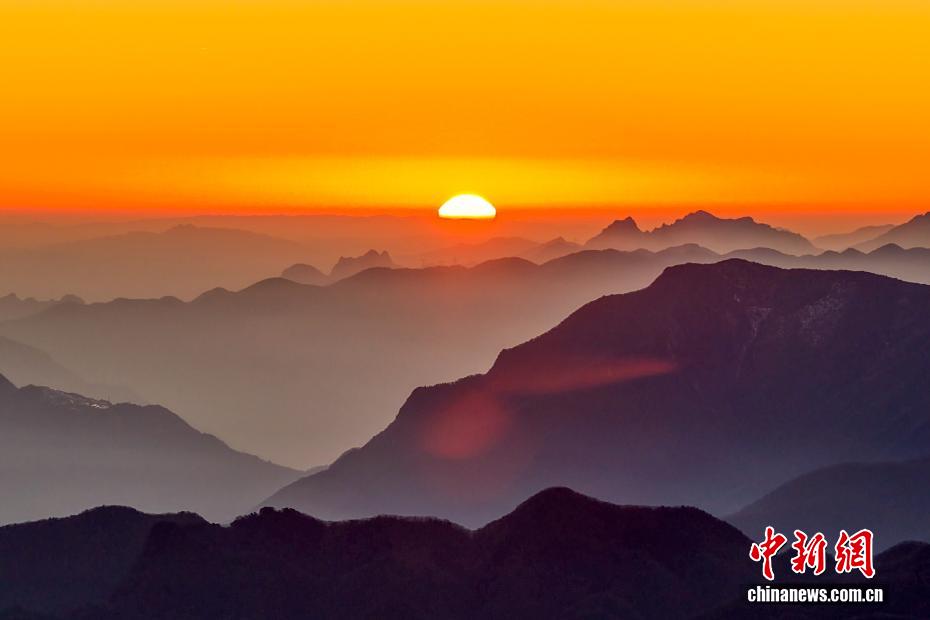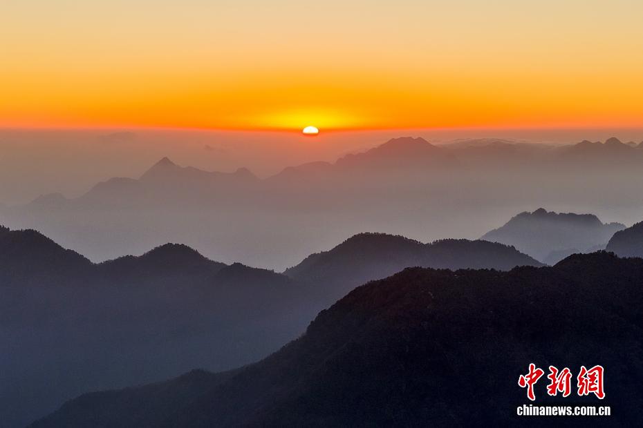 近日,在湖北省巴東縣小神農架,初升的朝陽穿過薄霧,將柔和的陽光灑在連綿的原始森林上,山巒在晨光中顯現出豐富的層次與輪廓,宛如一幅絕美的油畫。小神農架地處神農溪上游,海拔3005米,為大神農架姊妹峰,區域內有連綿山勢與縱橫溝壑,夏季云霧繚繞,冬季積雪覆蓋。圖為清晨初升的朝陽。