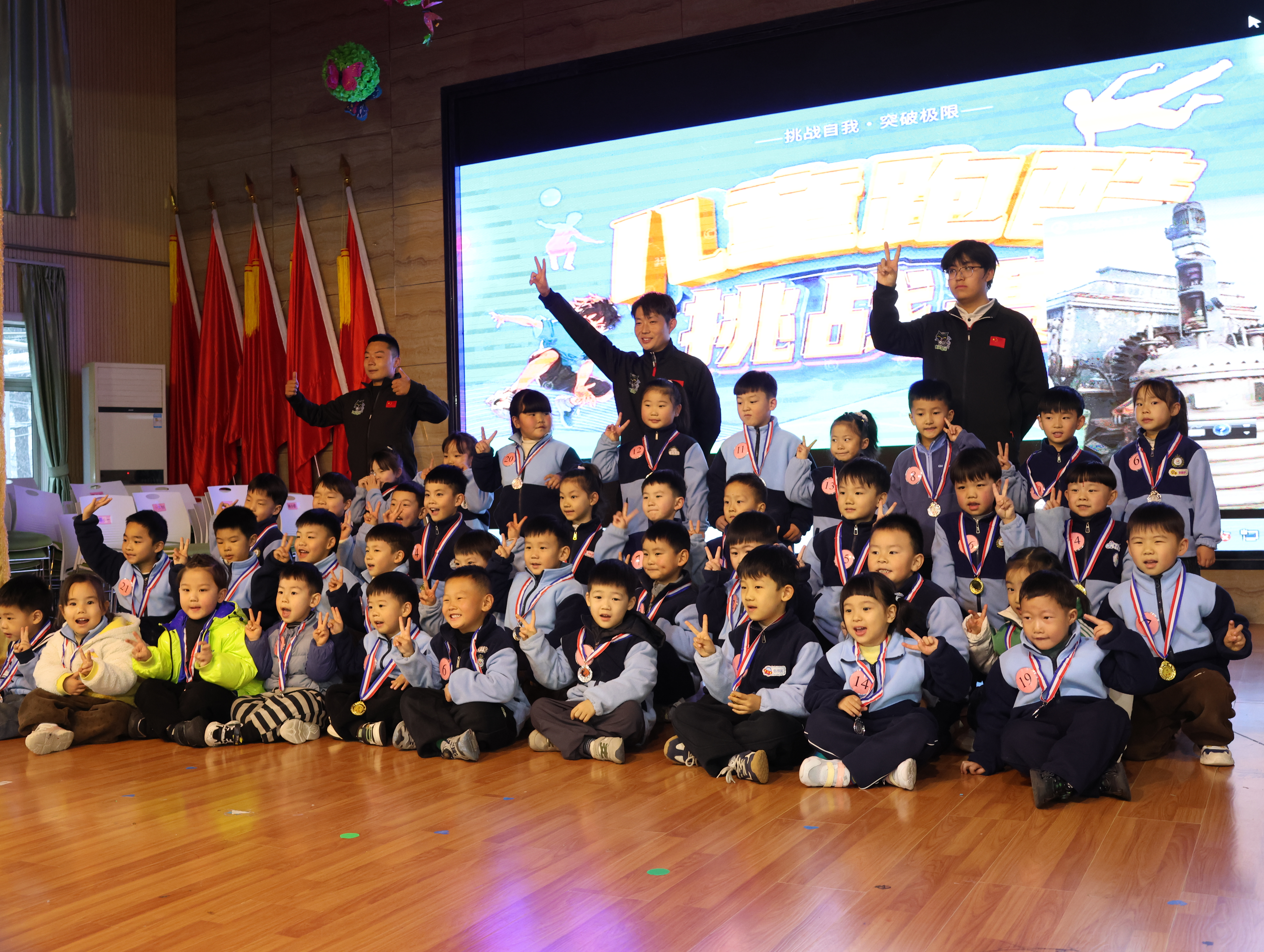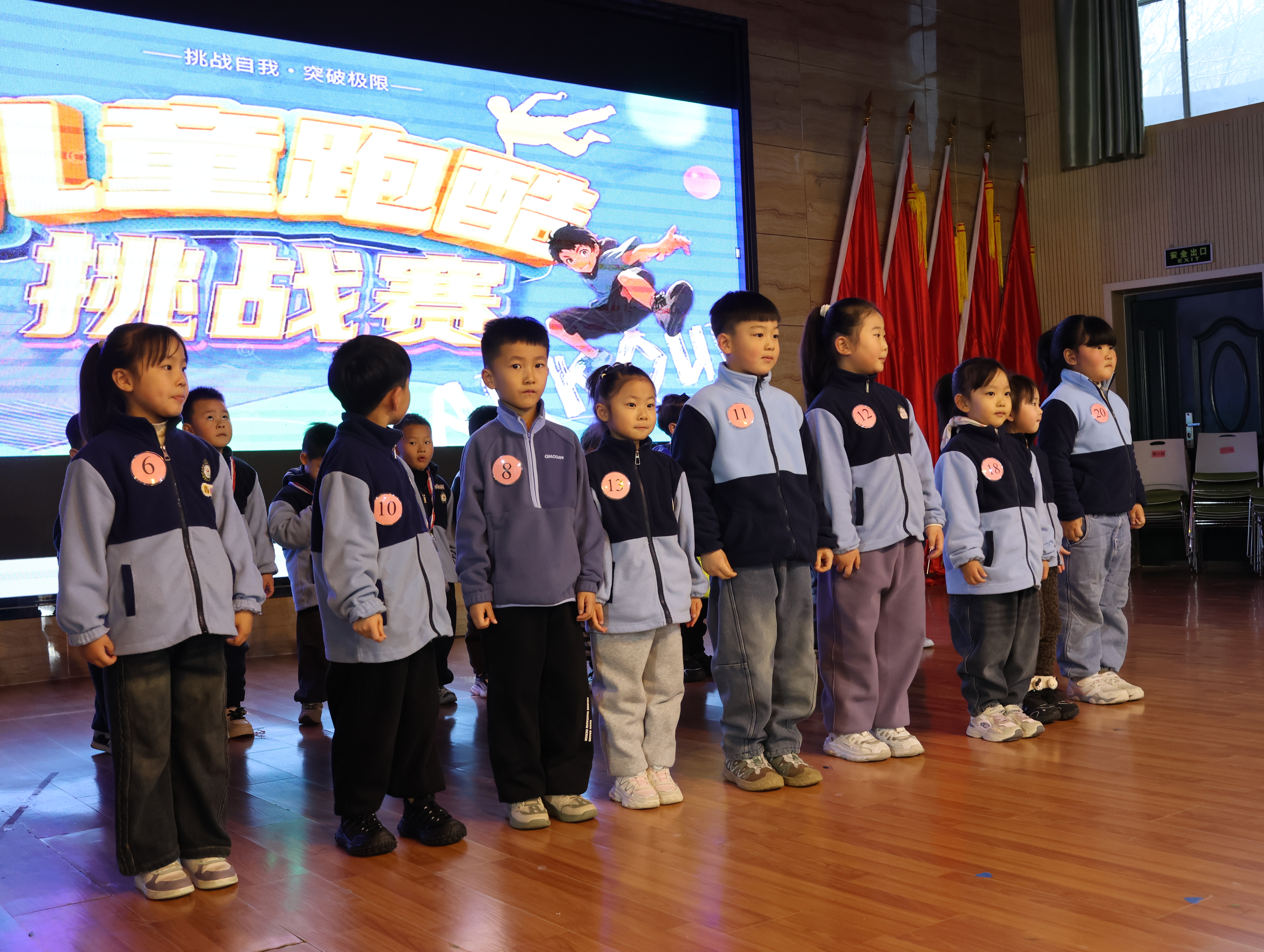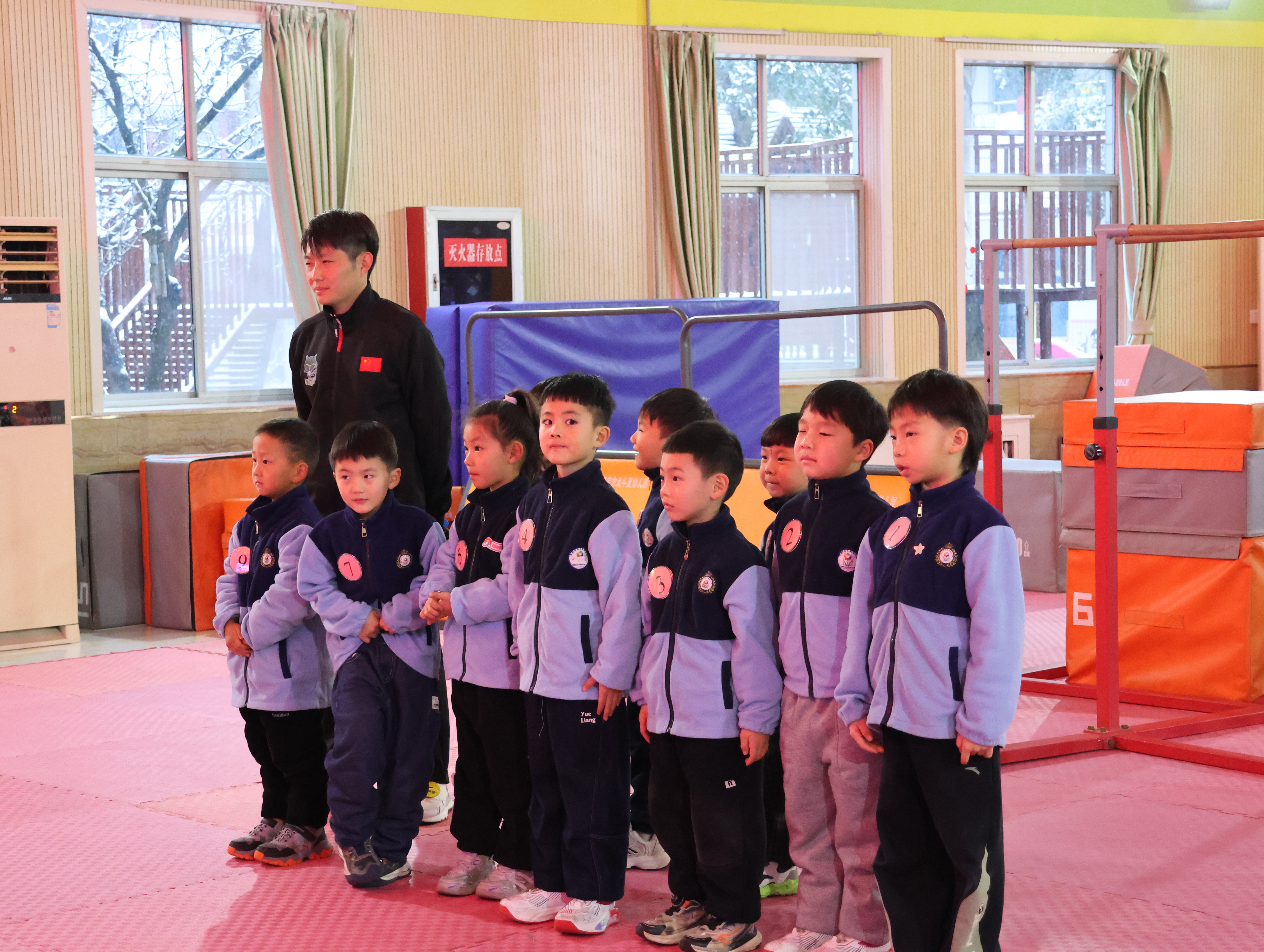 坦克老師活力滿滿的開場白讓全場安靜:“三個月前孩子們還手足無措,現在個個是小勇士!”這話戳中了我——想起外孫在家練前滾翻摔得齜牙咧嘴的模樣,如今要登臺展示,我既期待又緊張。