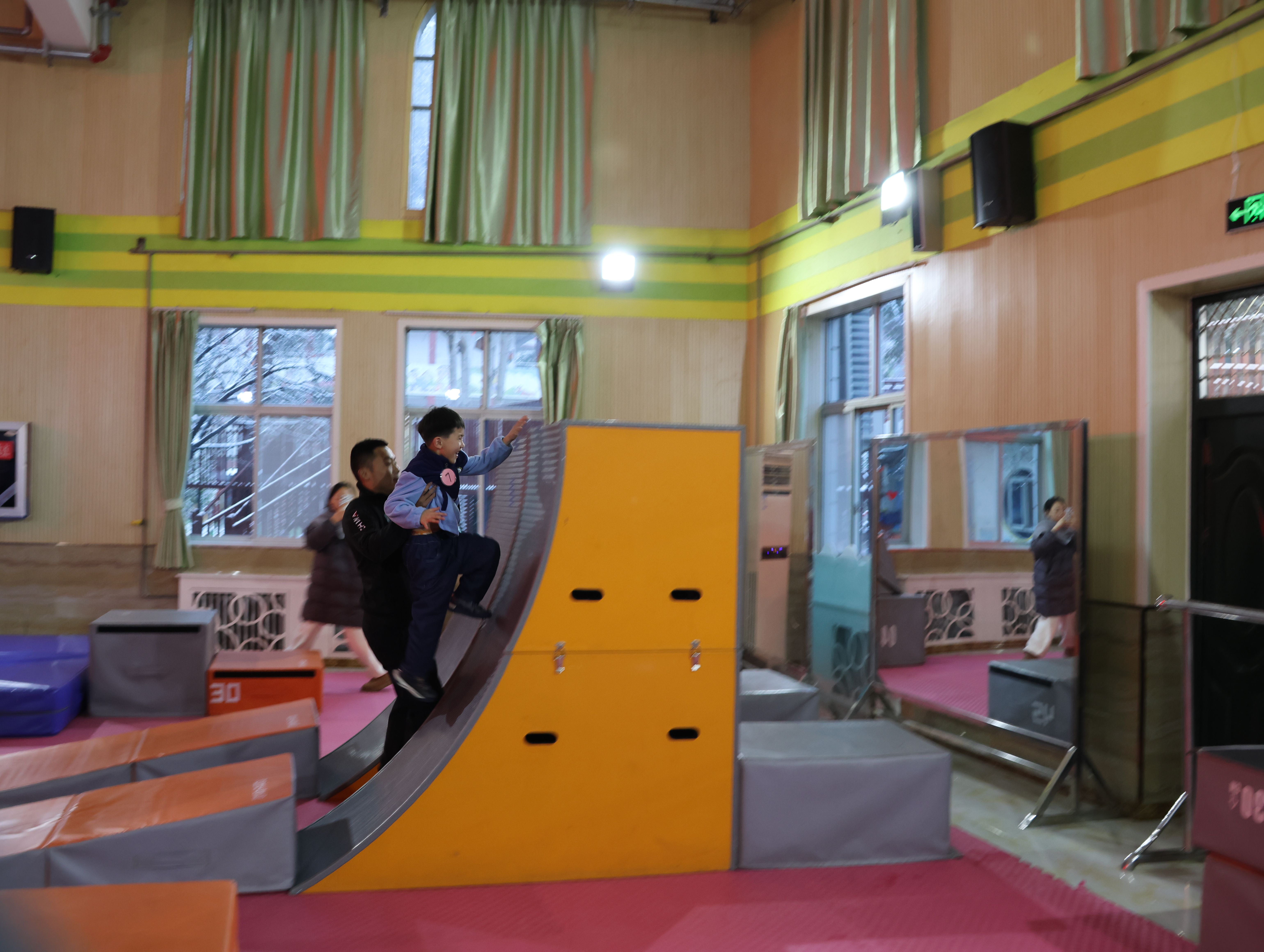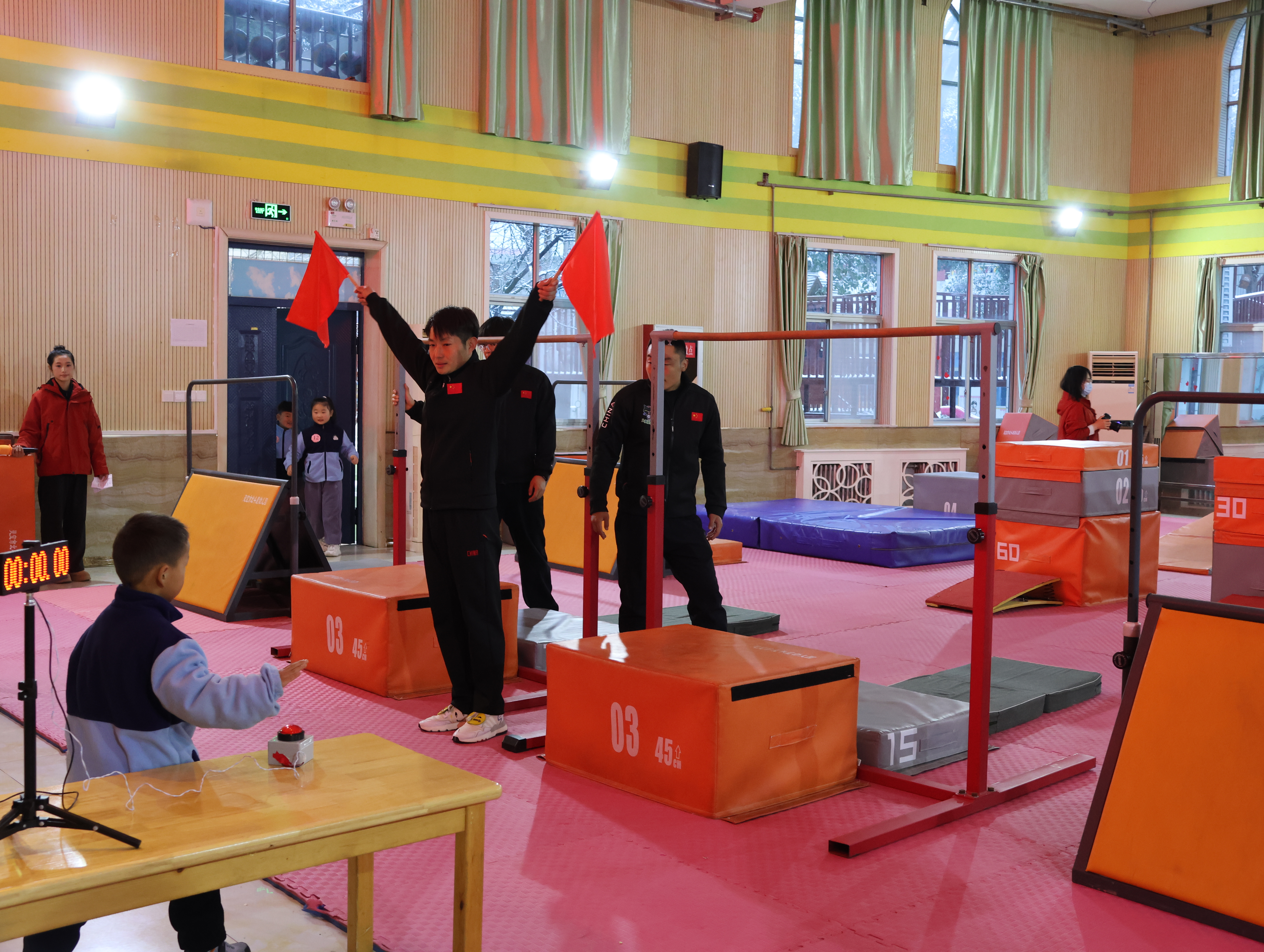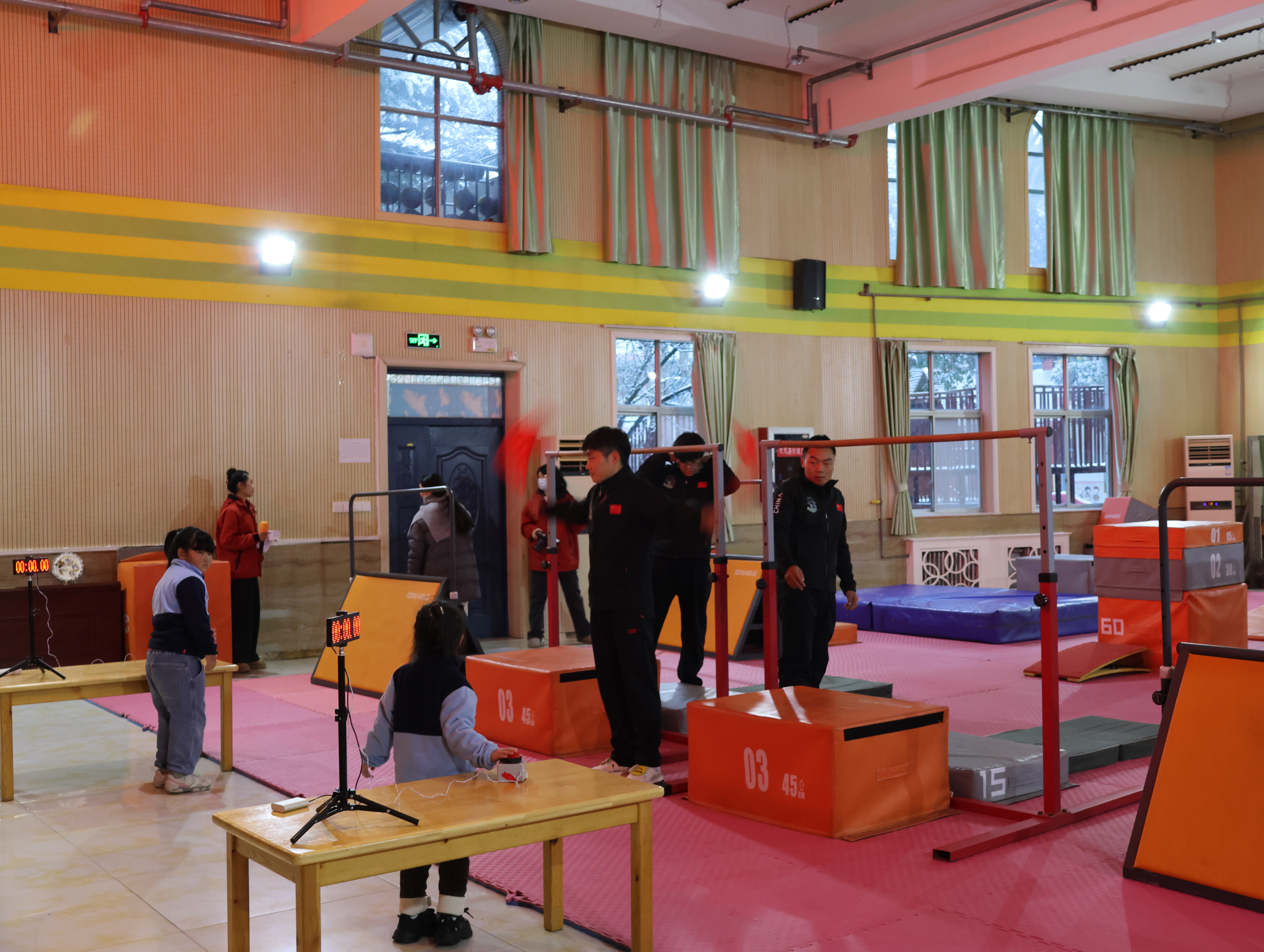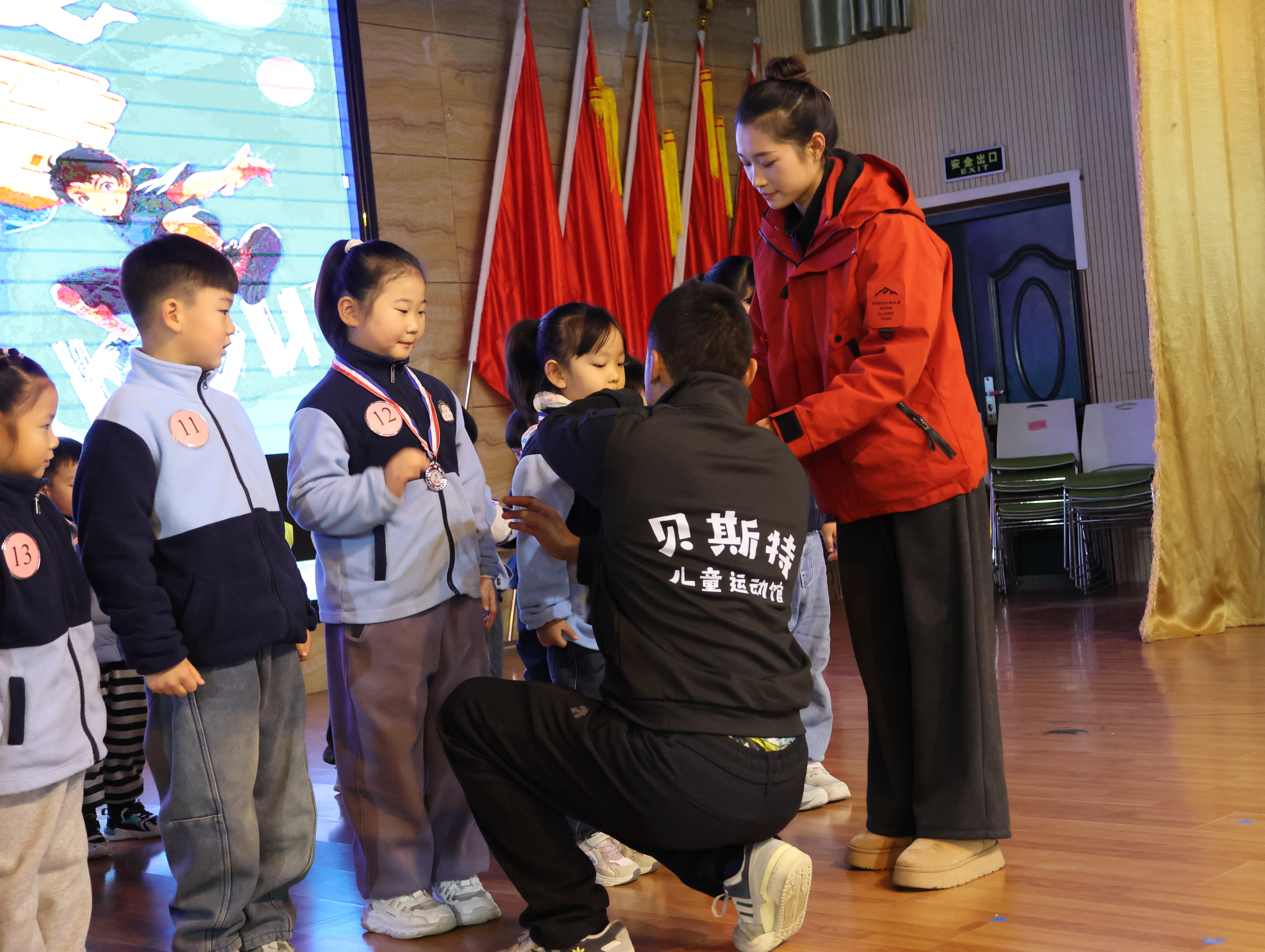 坦克老師活力滿滿的開場白讓全場安靜:“三個月前孩子們還手足無措,現在個個是小勇士!”這話戳中了我——想起外孫在家練前滾翻摔得齜牙咧嘴的模樣,如今要登臺展示,我既期待又緊張。