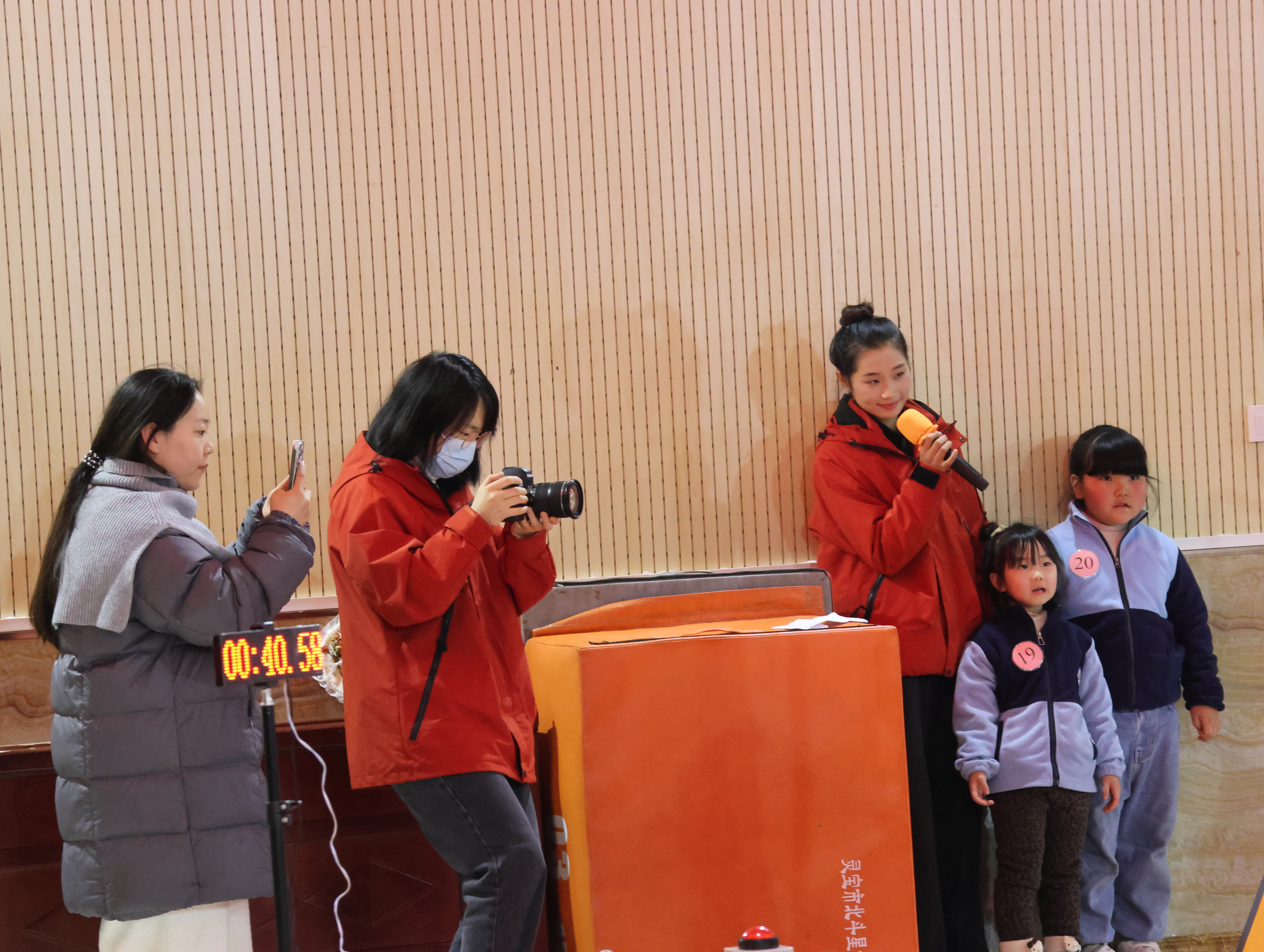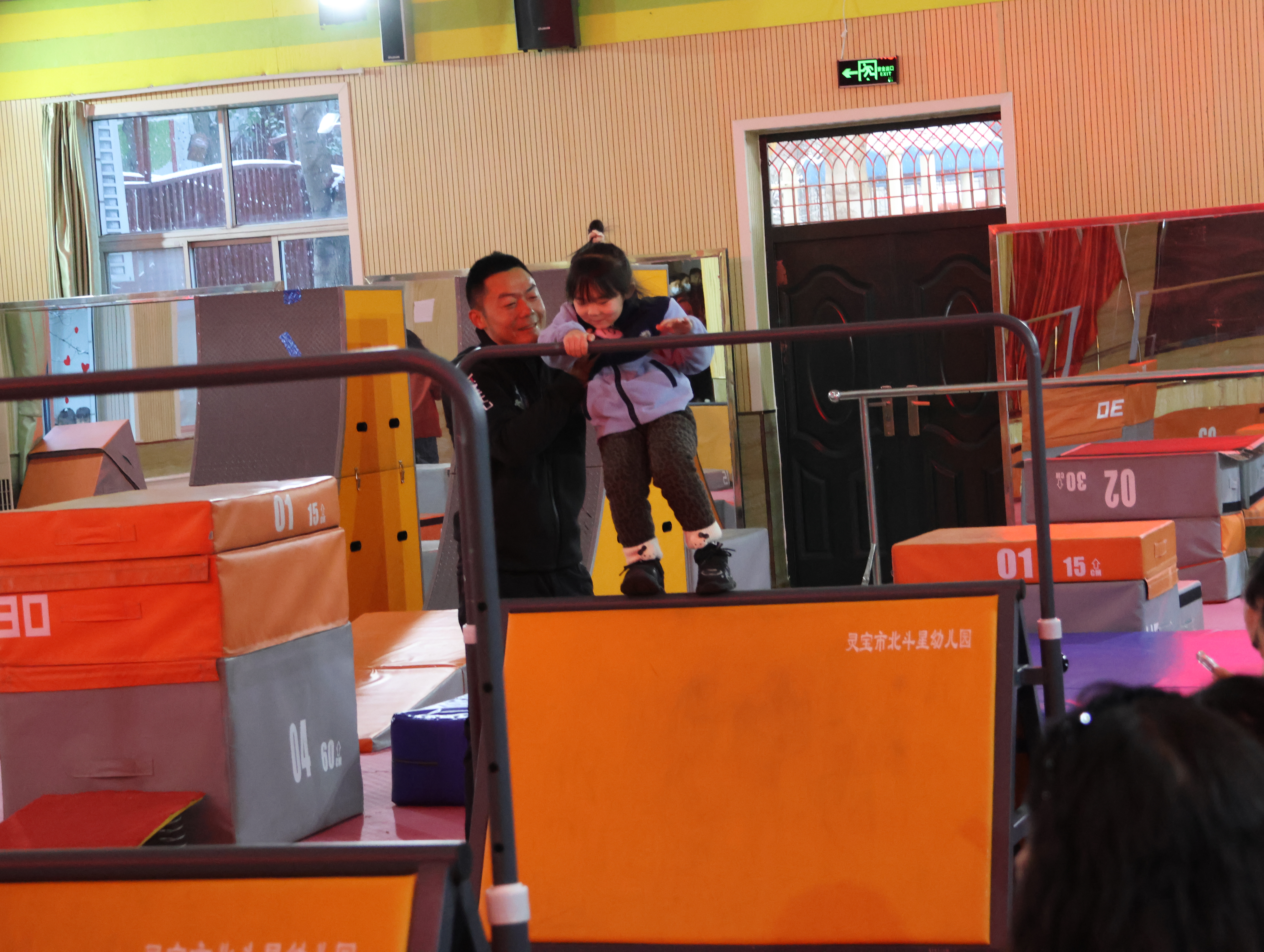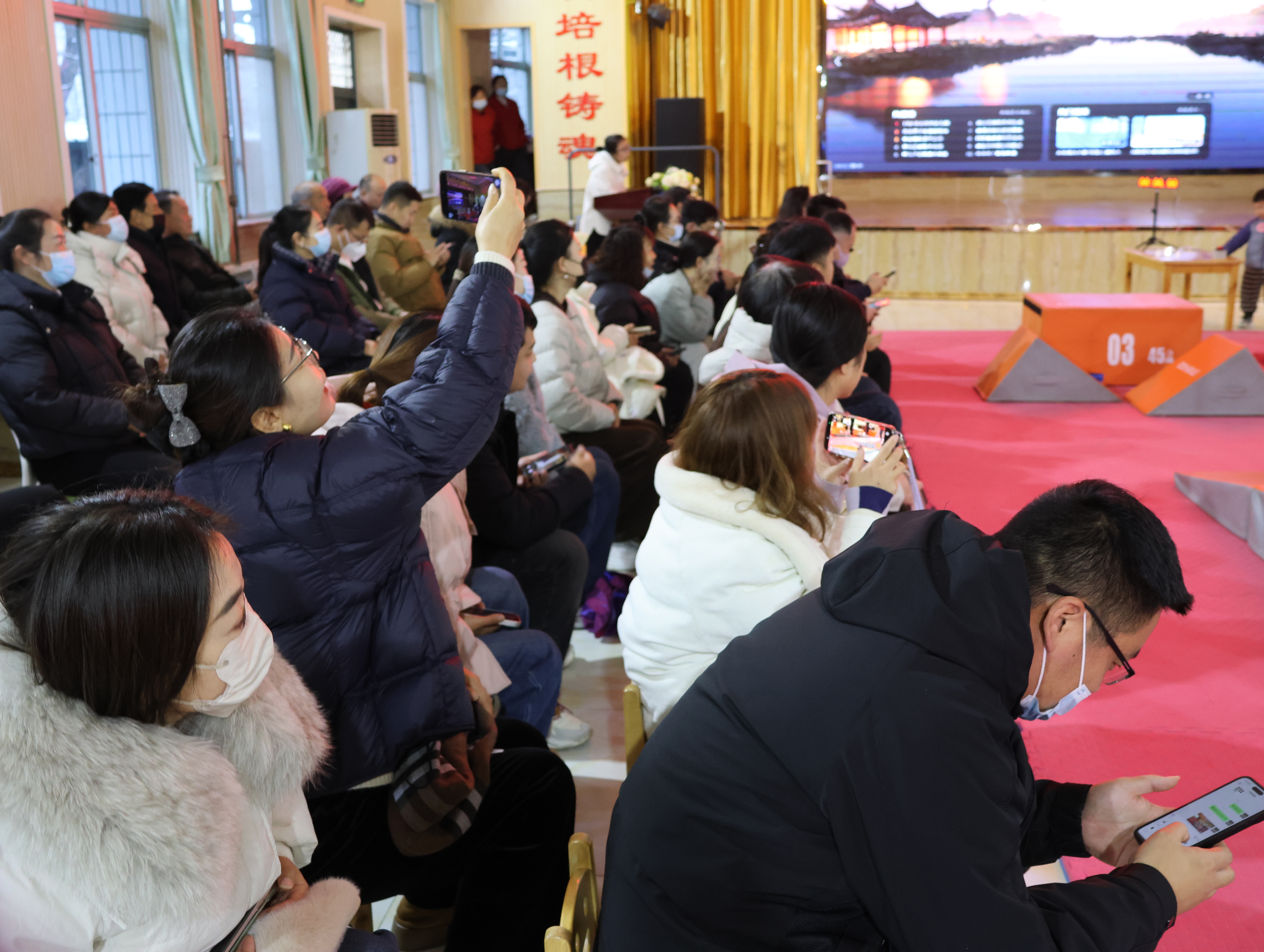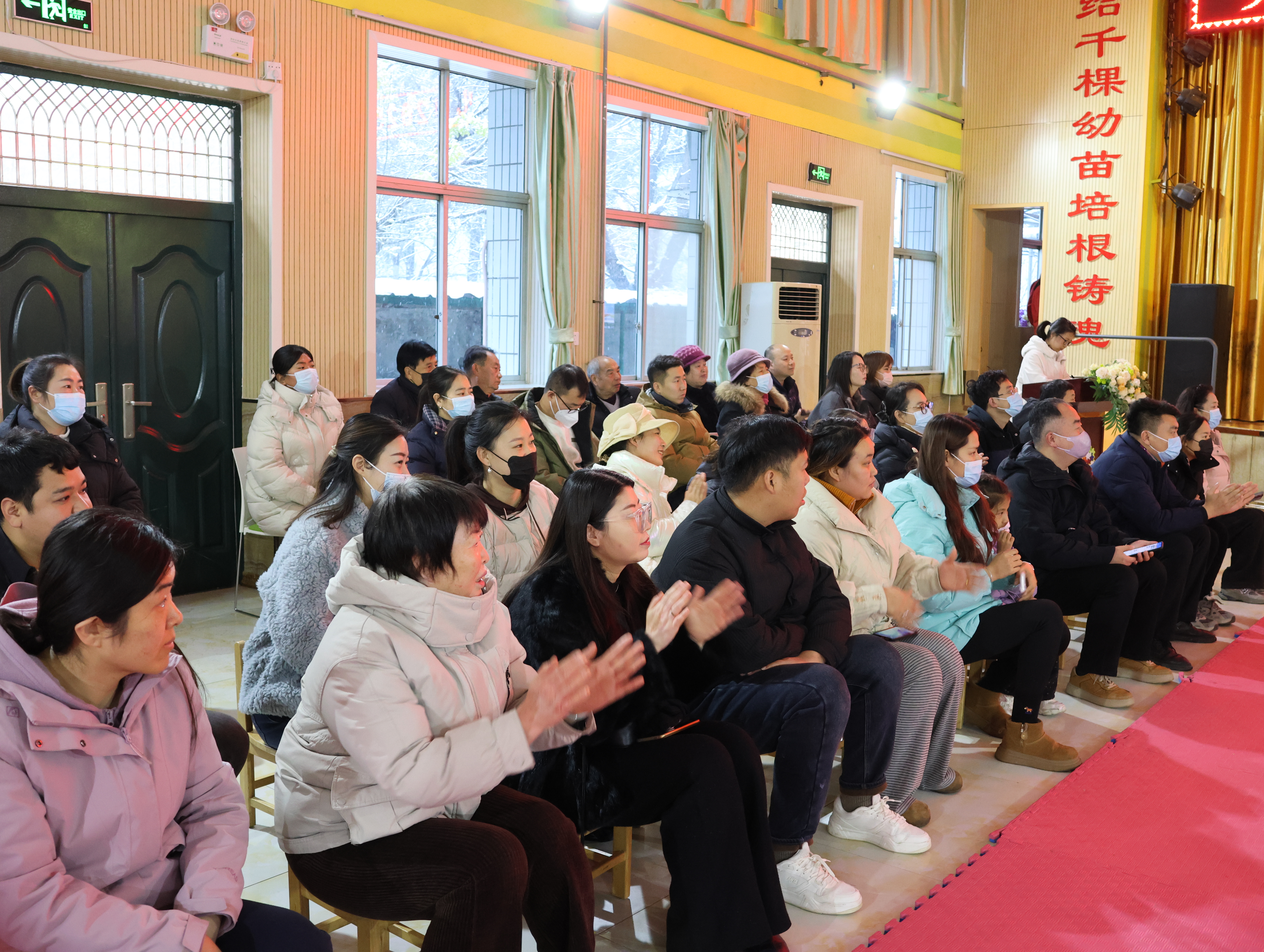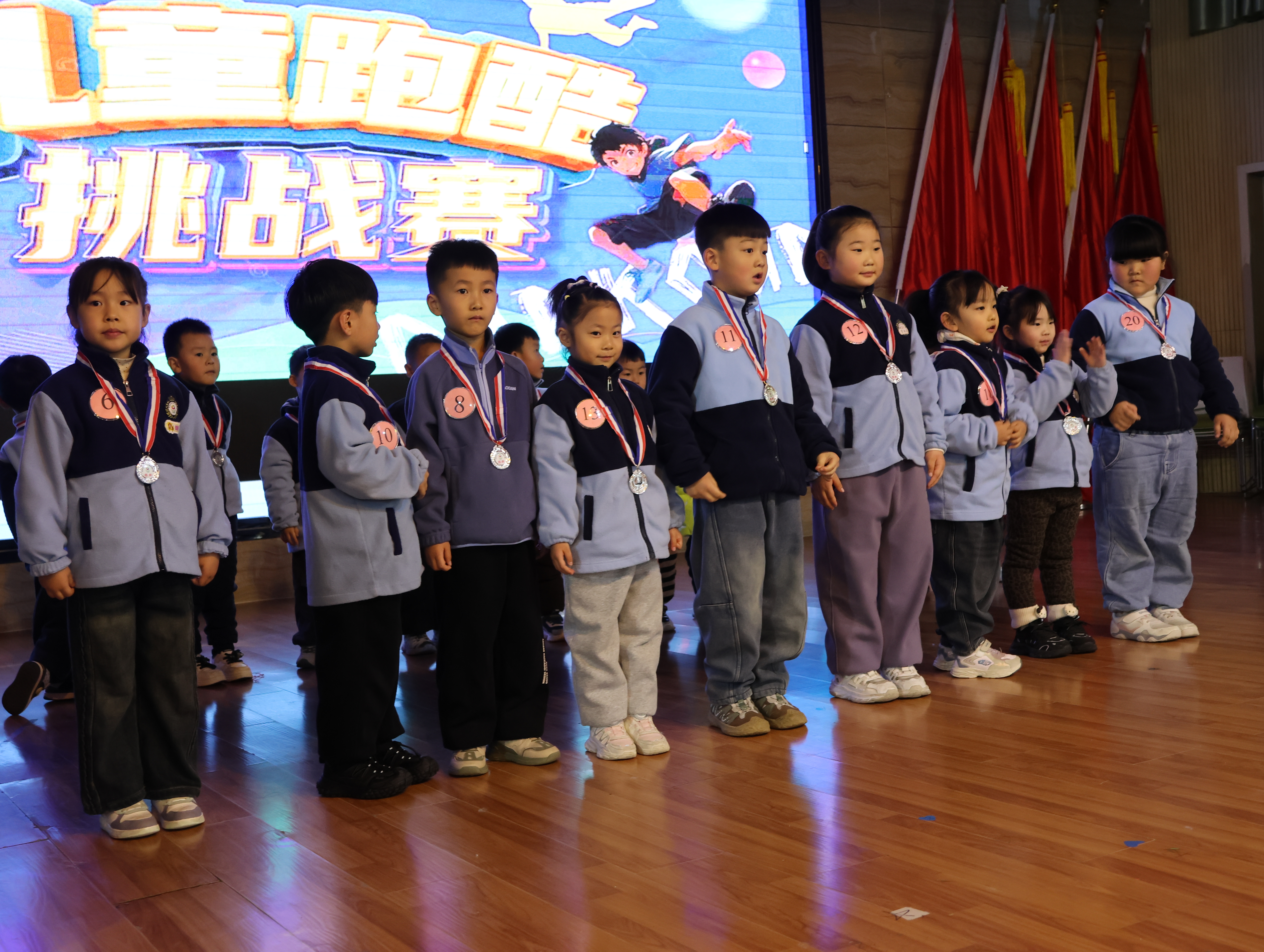 2025年12月12日下午三點,靈寶市北斗星幼兒園大禮堂暖意融融,窗外細密的雪粒正打著旋兒飄落。我揣著滿電的相機和手機,搓了搓凍得發僵的手,早早搶占靠前位置——鏡頭對準跑道入口,絕不能錯過外孫登場的瞬間。“勇敢奔跑,快樂成長”的舞臺后墻屏幕格外醒目,家長們的交談聲混著孩子的嬉鬧,滿是活力。我鄰座的寶媽正調試支架,后排老友老張舉著老花鏡查賽程,我倆相視一笑——手里的設備都早已“嚴陣以待”。