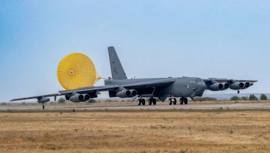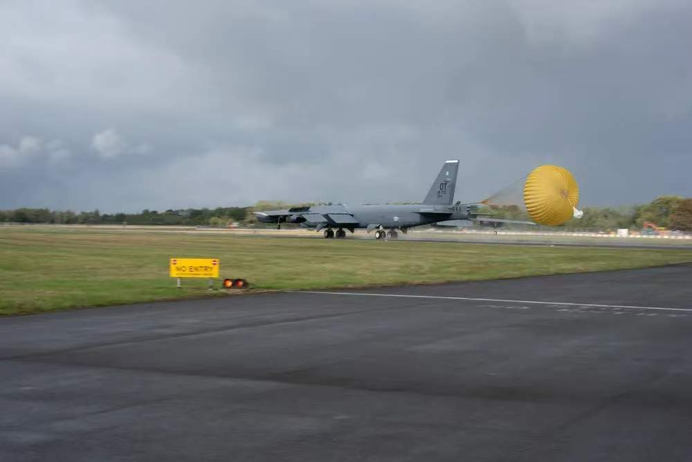 這是B-52H地面開(kāi)傘的照片,對(duì)比一下就知道,這次“空中開(kāi)傘不成功”。