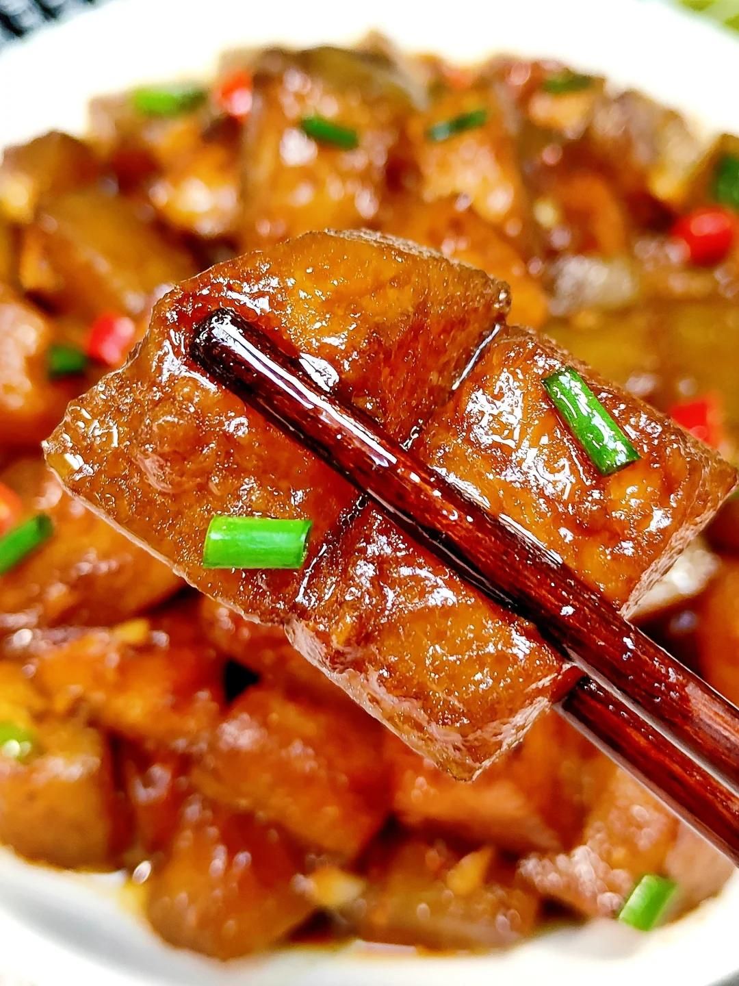 切塊有講究:去皮后切成麻將塊大小,厚度要均勻,這樣受熱才一致。太薄容易爛,太厚不入味。