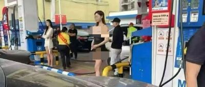 廣東江門一加油站請美女模特“雙十二”促銷引爭議,有車主合影留念;執法部門:勸離模特,責令整改