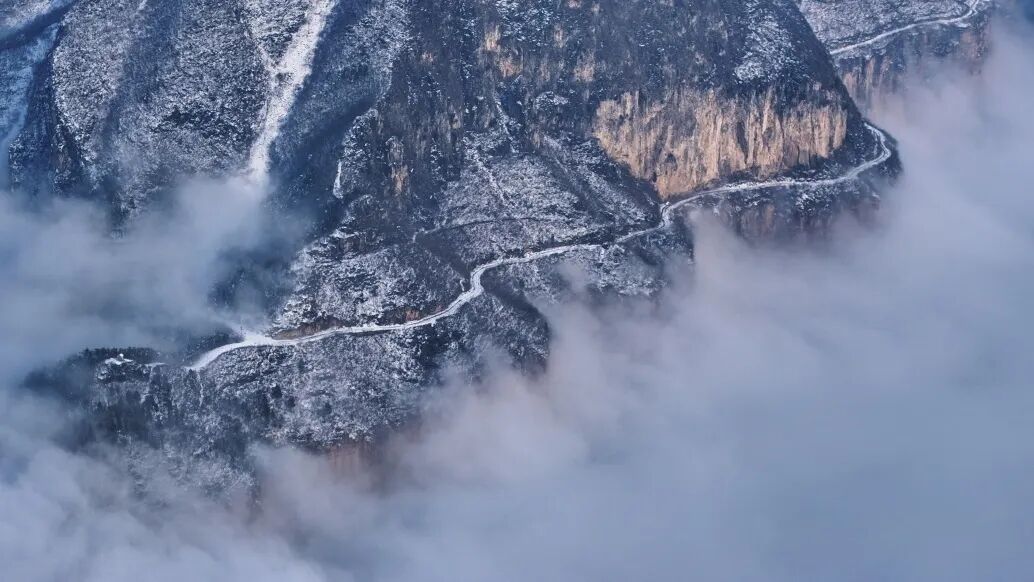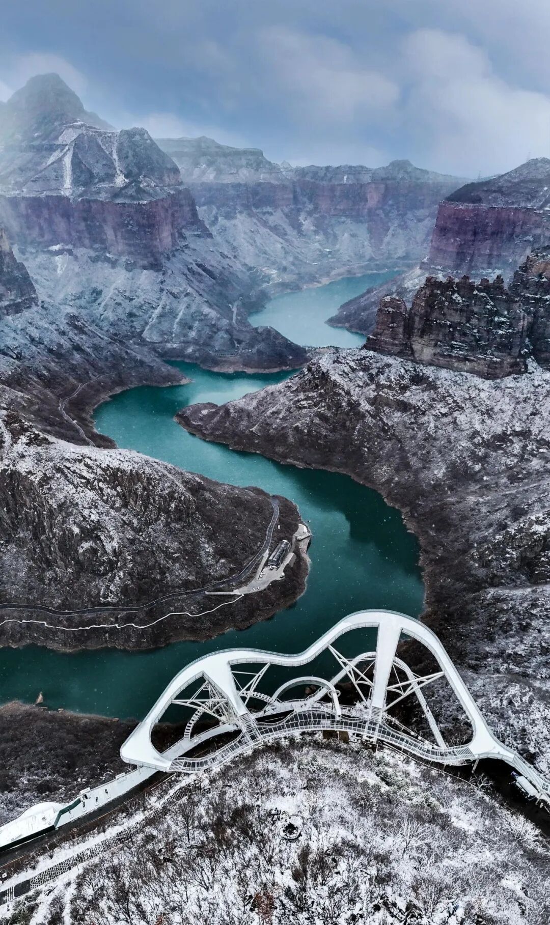 俯瞰雪后游龍灣的骨骼脈絡(luò)!