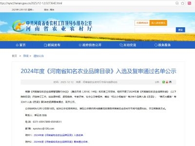 公示時(shí)間為12月12日至18日。如對(duì)公示名單有異議,請(qǐng)?jiān)诠酒趦?nèi)將書(shū)面意見(jiàn)反饋至河南省農(nóng)業(yè)農(nóng)村廳市場(chǎng)與信息化處,并注明聯(lián)系方式。