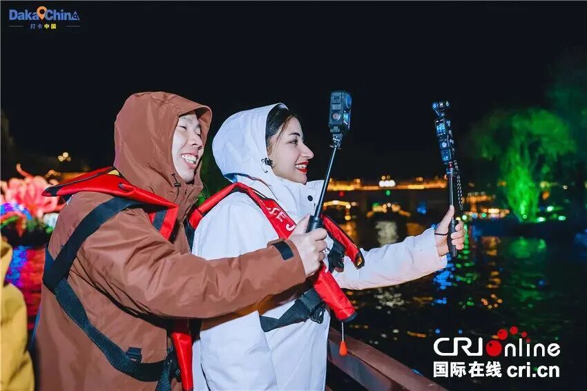 埃及網(wǎng)紅努蘭夫婦在拍攝汴河風(fēng)景 圖源:中央廣電總臺國際在線