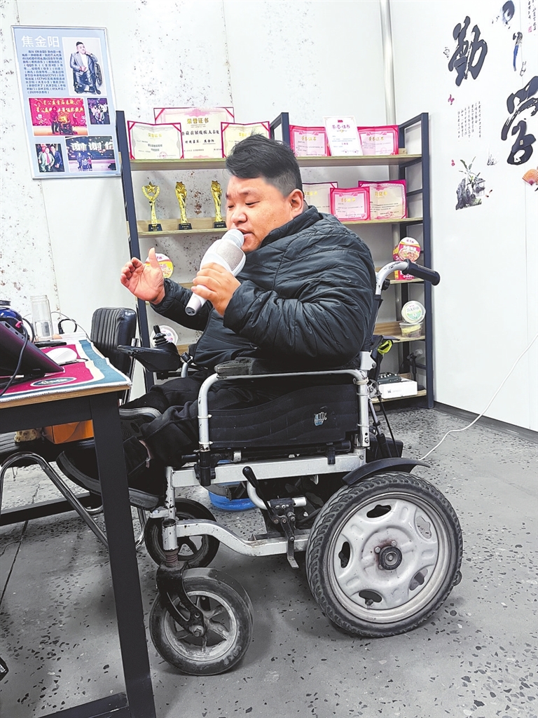 “我是一名二級殘疾人,身高一米二,出行要靠輪椅,但在這里工作卻不受身體影響。我擅長唱歌,公司根據我的技能特長,為我量身定制了一個同時具備娛樂性和商業價值的直播間,打造了我的娛樂主播形象。你看,我的直播間里多熱鬧。”與粉絲們打聲招呼后,暫時離開直播間的焦金洋一臉自豪。