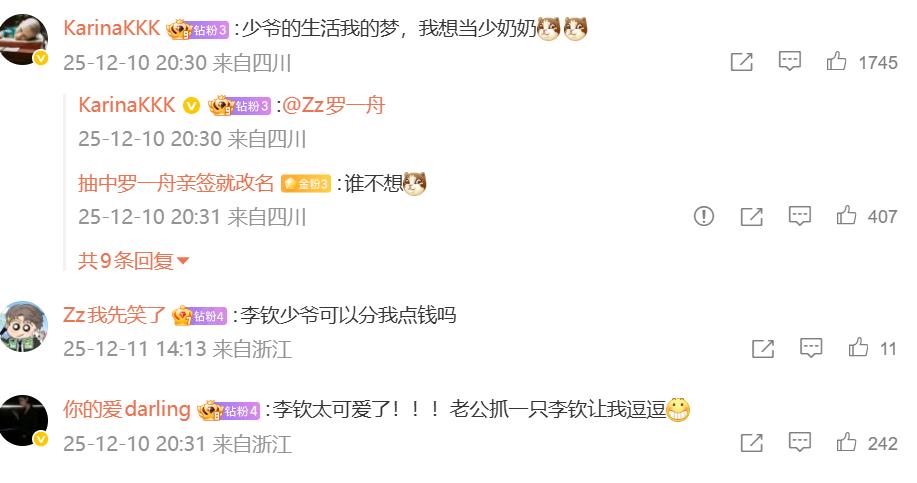 他抖落了不少劇照,粉絲在評論區喊著說要當李家少奶奶。還有不少喊話少爺分點錢的。