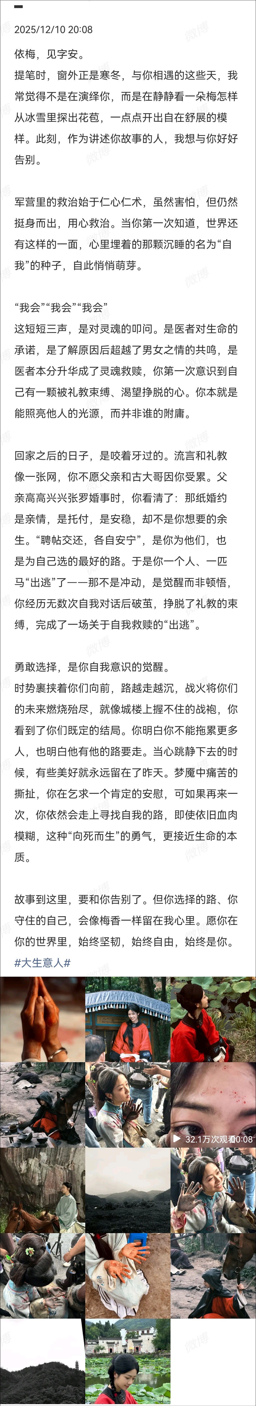 在大結局當日,劇里的一眾演員紛紛發文告別角色。