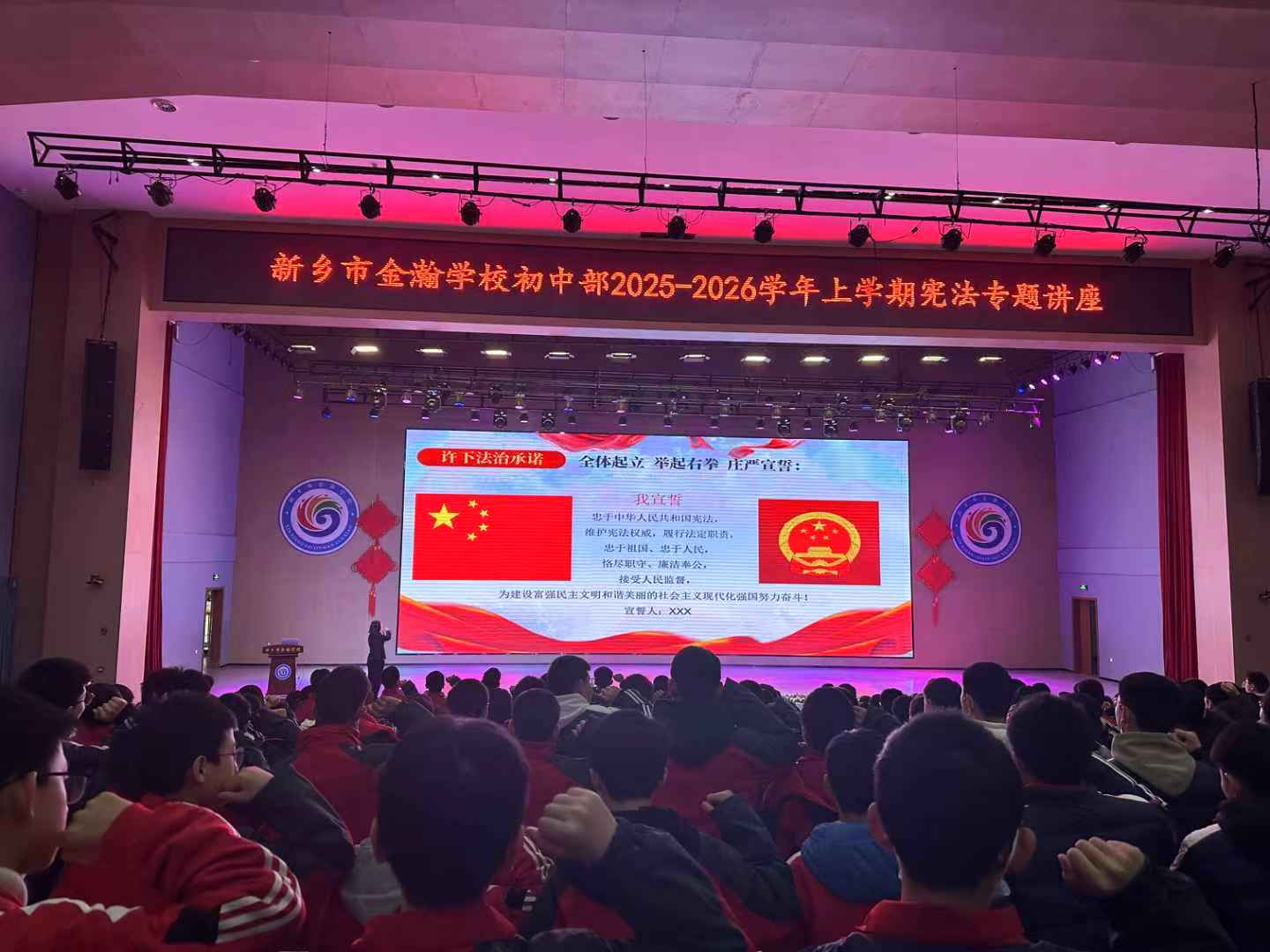 最后,在馬靜法官的帶領下,全體同學起立,舉起右拳,莊嚴宣誓。誓言聲鏗鏘有力,在報告大廳中回蕩,也深深烙印在每一位同學的心中。不僅讓同學們對憲法知識有了更直觀、更深刻的理解,更在他們心中播下了尊法學法守法用法的種子。大家紛紛表示,將永遠銘記今天的誓言,從身邊小事做起,自覺遵守憲法和法律,用法治精神護航自己的青春成長之路,為營造和諧、安全的校園環境和社會氛圍貢獻自己的一份力量。