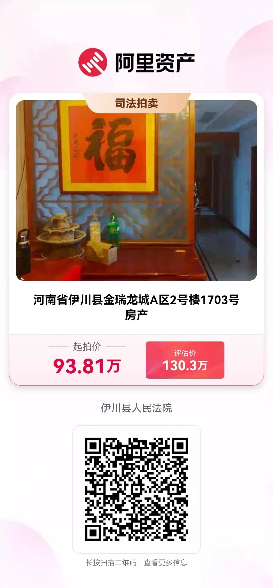 標的:河南省伊川縣金瑞龍城A區2號樓1703號房產