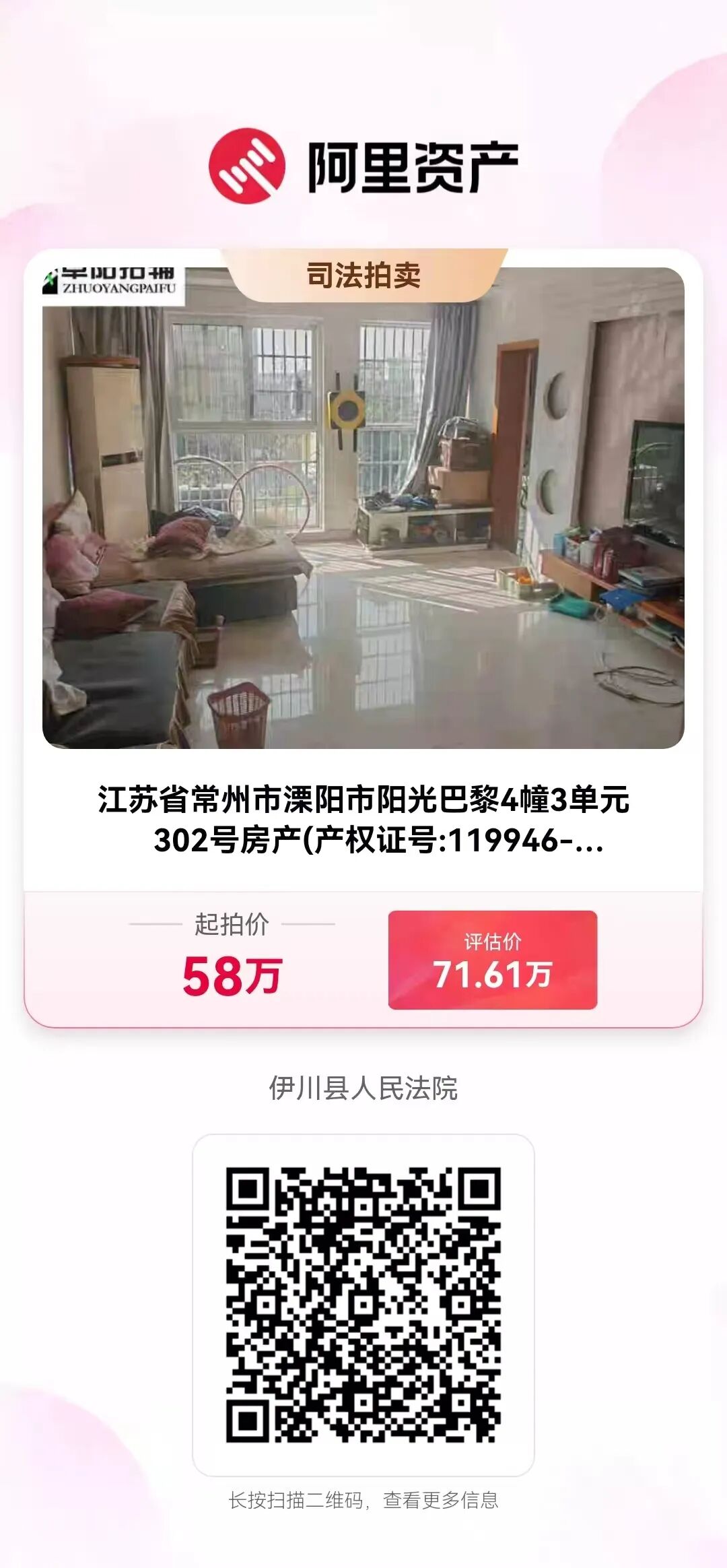 標的:江蘇省常州市溧陽市陽光巴黎4幢3單元302號房產(產權證號:119946-1,119946)