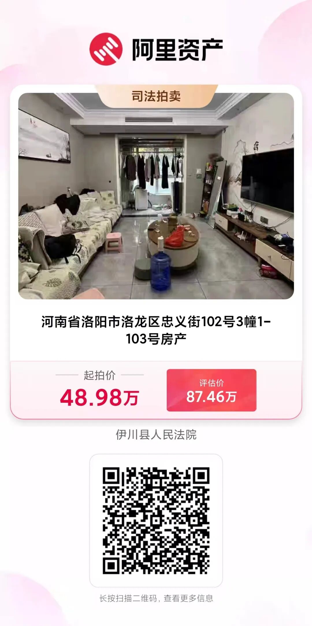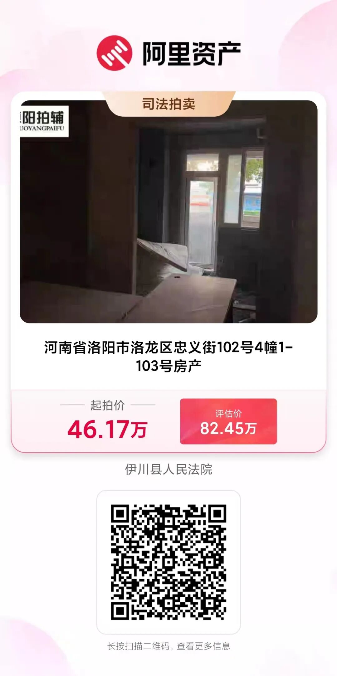 標的:河南省洛陽市洛龍區忠義街102號4幢1-103號房產