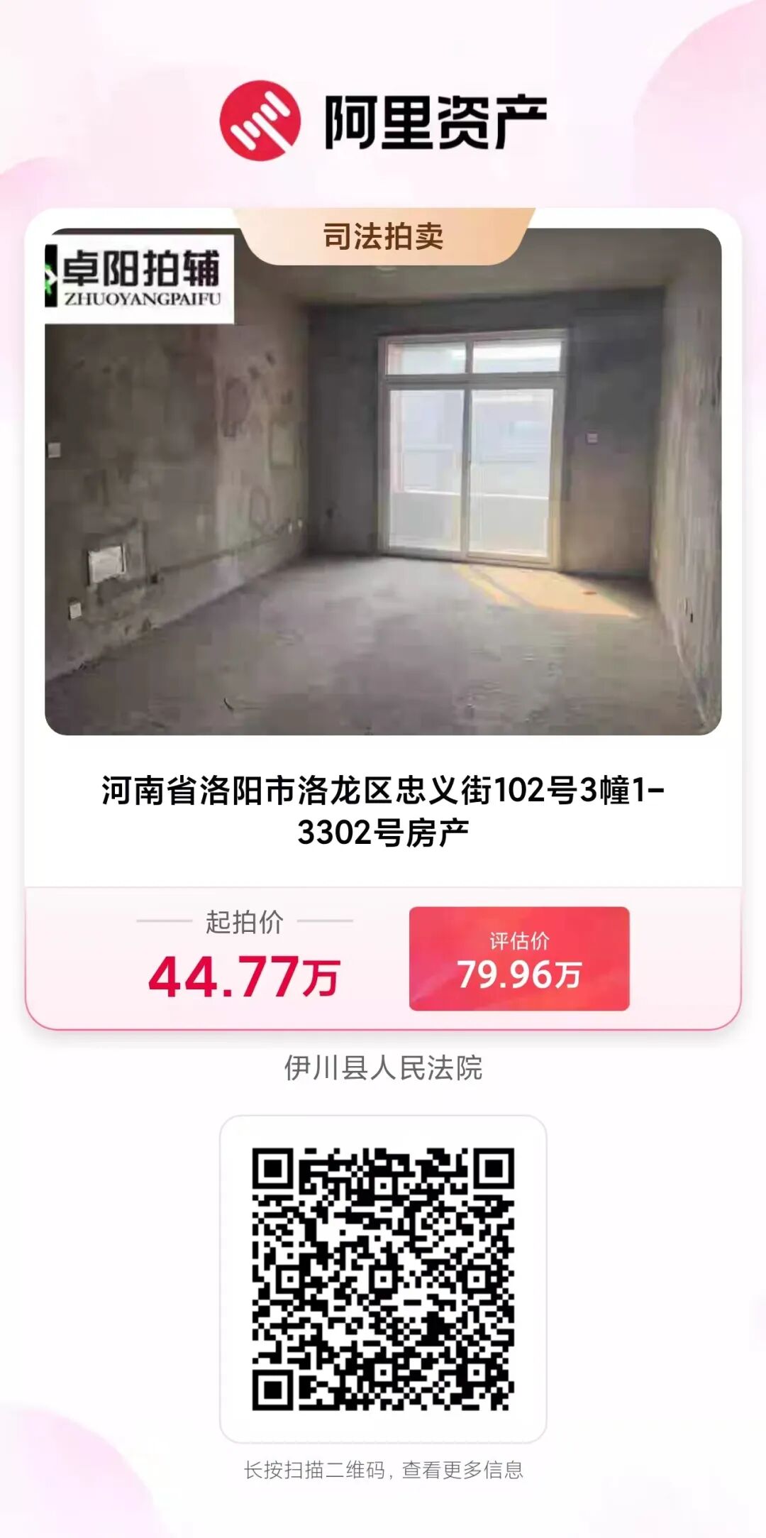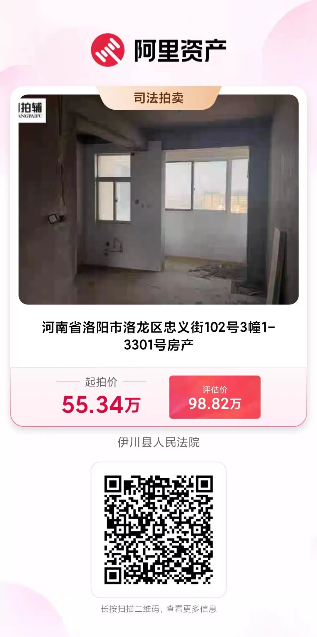 標的:河南省洛陽市洛龍區忠義街102號3幢1-3301號房產