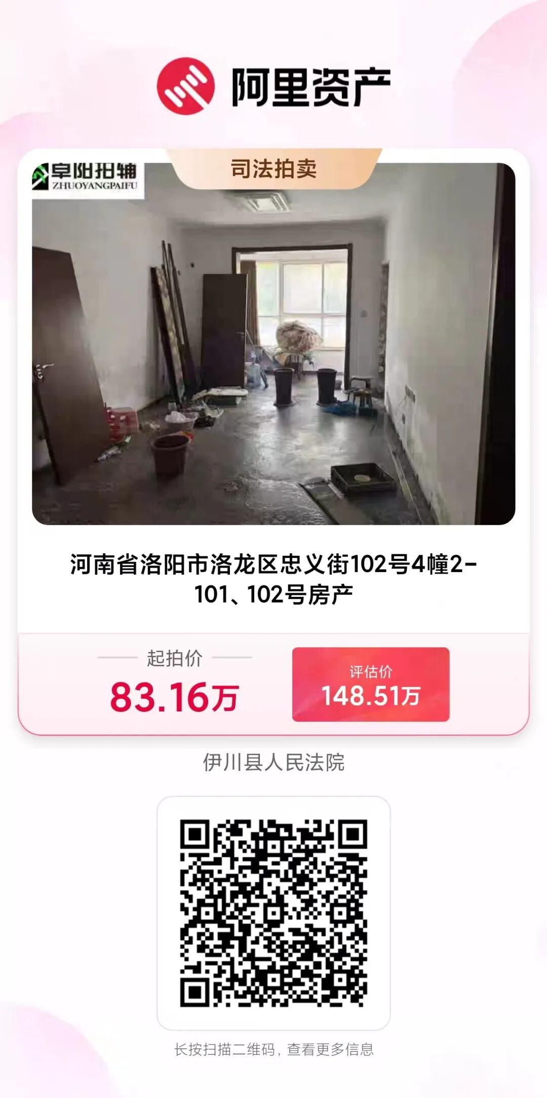 標的:河南省洛陽市洛龍區忠義街102號4幢2-101、102號房產