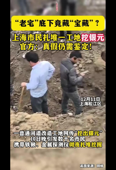 上海市民扎堆一工地挖銀元 當地:未收繳到出土物件
