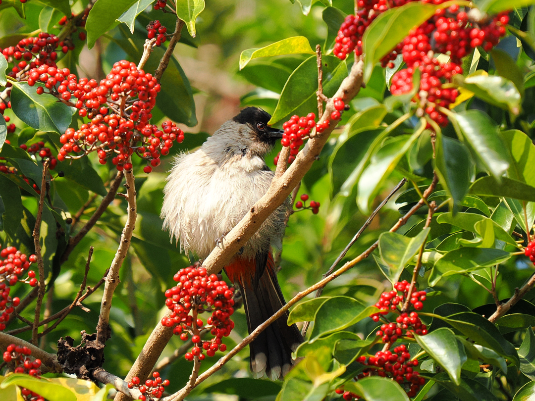 鐵冬青樹上的白喉紅臀鵯(紅塵外攝)