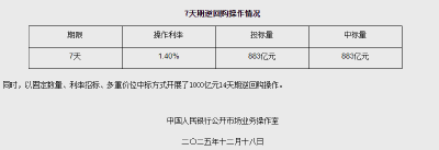 央行公告,為保持銀行體系流動(dòng)性充裕,2025年12月15日,中國人民銀行將以固定數(shù)量、利率招標(biāo)、多重價(jià)位中標(biāo)方式開展6000億元買斷式逆回購操作,期限為6個(gè)月(182天)。(央行)