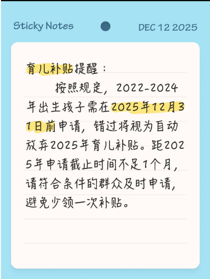 育兒補(bǔ)貼提醒