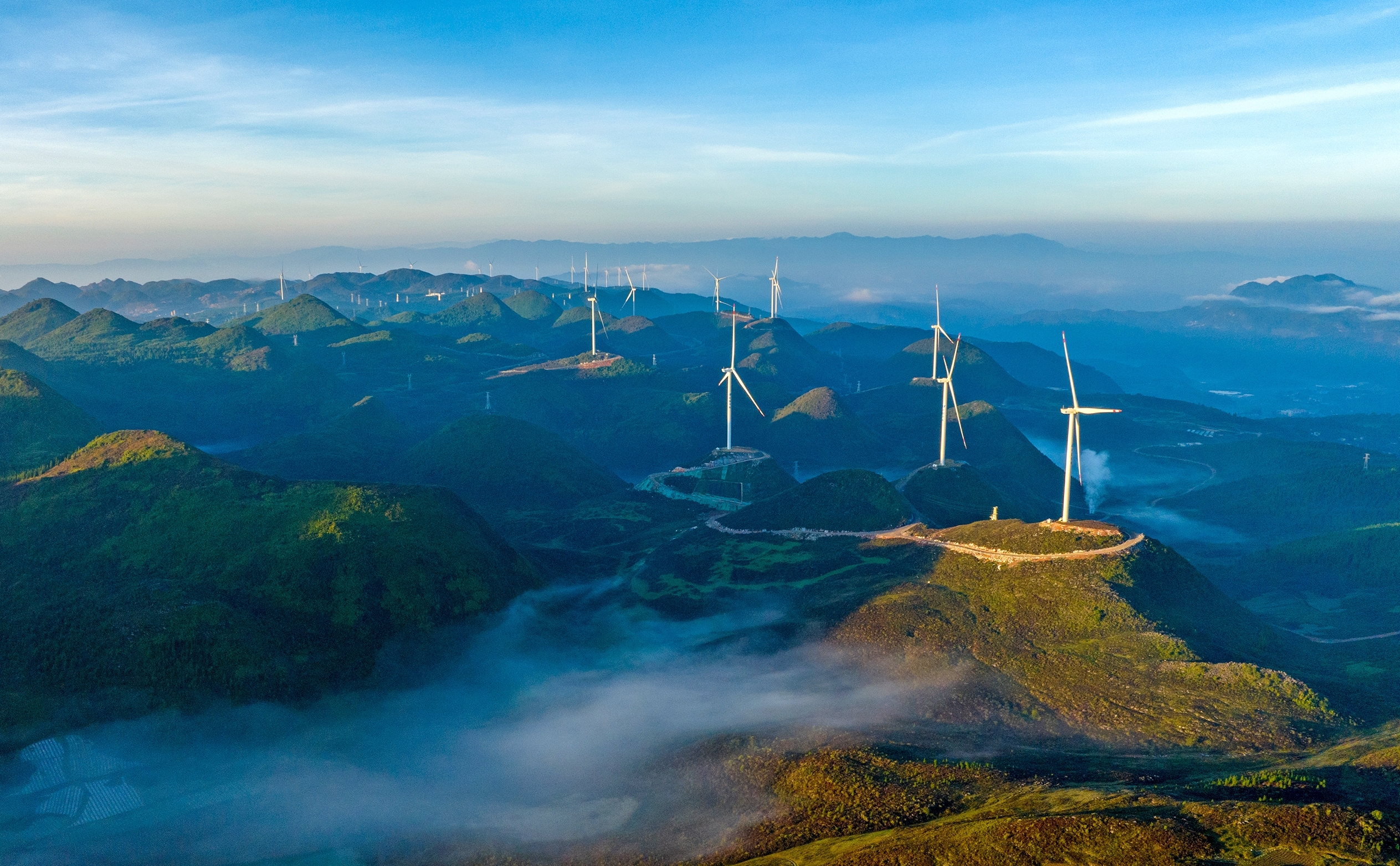 云南哈尼族彝族自治州個舊市蓮花山風電場。圖源視覺中國