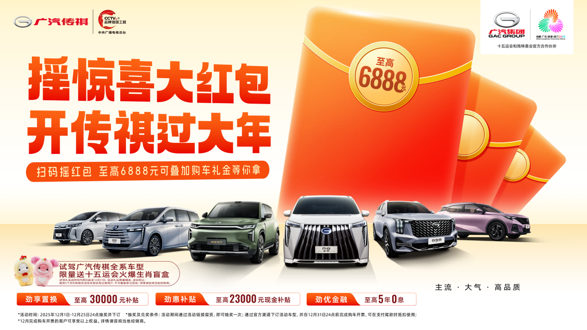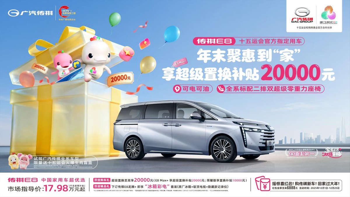 年關(guān)將至,為感恩回饋廣大消費者,廣汽傳祺MPV專家超級置換季推出多重年終限時禮遇:下訂傳祺E8 MAX+版本,享全品牌置換補貼20000元,E8榮耀系列享置換補貼10000元,下訂E8龍騰+可免費升級“冰箱彩電”套裝;即日起至12月25日,購傳祺全系車型可參與掃碼搖紅包,至高可得6888元購車紅包;即日起至12月31日,線下到店試駕更可獲十五運周邊盲盒,年終購車福利多多,正是入手好時機!