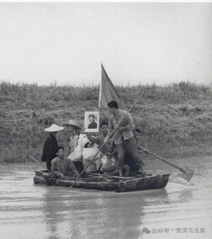 五十多年前,路金棟先生下放到共青團(tuán)中央設(shè)在潢川縣黃湖農(nóng)場(chǎng)的“五七”干校。曾在這所干校學(xué)習(xí)、勞動(dòng)的知名人物還有有胡耀邦、葉圣陶。下圖,救淮濱被困群眾。