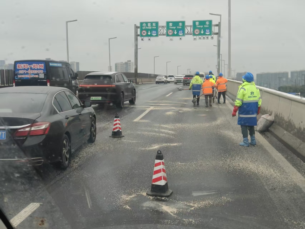 截止下午14時30分,鄭州市城管局所屬市環衛中心應急人員共出動957人次,多功能除雪車、撒布機、大型雪輥等作業除雪設備及車輛126臺,撒布融雪劑6.8噸,道路重要點位及立交匝道采用人工拋撒融雪劑的清除措施。公用集團除雪工作人員共出動2466人次,出動除雪設備及車輛271臺,撒布融雪劑262.3噸,重點對項目所有坡道及引坡、人行天橋、涵洞等背陰路段,嵩山立交、京廣立交、東三環立交、機場跨線立交、隴海立交、宇通立交、中州大道立交、京廣繞城立交、賈魯河橋、彩虹橋、鄭少、鄭密、鄭新、南三東延互通立交等高架匝道進行撒布,目前市區道路經布撒融雪劑后,基本消除道路結冰積雪情況,道路正常通行。