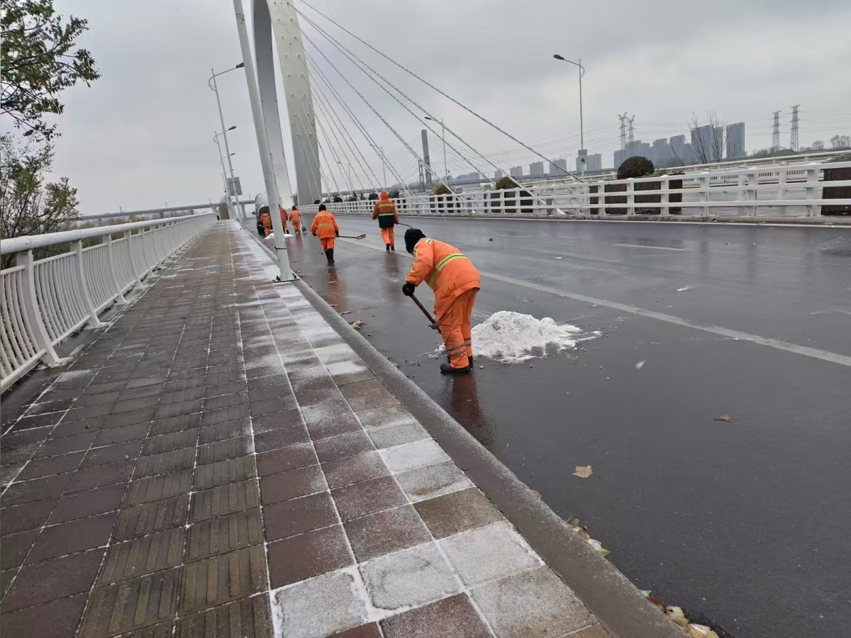 管城區、金水區城管部門加強道路巡查,安排環衛人員對橋梁,十字路口,陡坡等重點位置拋灑融雪劑,以防道路結冰;經開區、高新區組織對轄區內涵洞、橋梁、上下橋口等重點路段、易結冰部位撒布融雪劑。