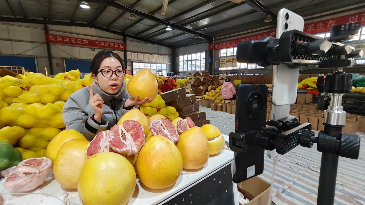 “這個柚子大家看一下汁水,看充足不充足,大家放心去拍,糖度能夠達到15個點”,近一個多月來,“直播達人”陳水平夫婦在福建省漳州市平和縣,用一口標準的河南話,為廣大網友直播。他們雖身在南方,但直播基地遠在1400公里外的河南省許昌市鄢陵縣,“南方水果北方賣”,這背后,是一盤鄢陵縣規劃中原電商物流基地的大棋。