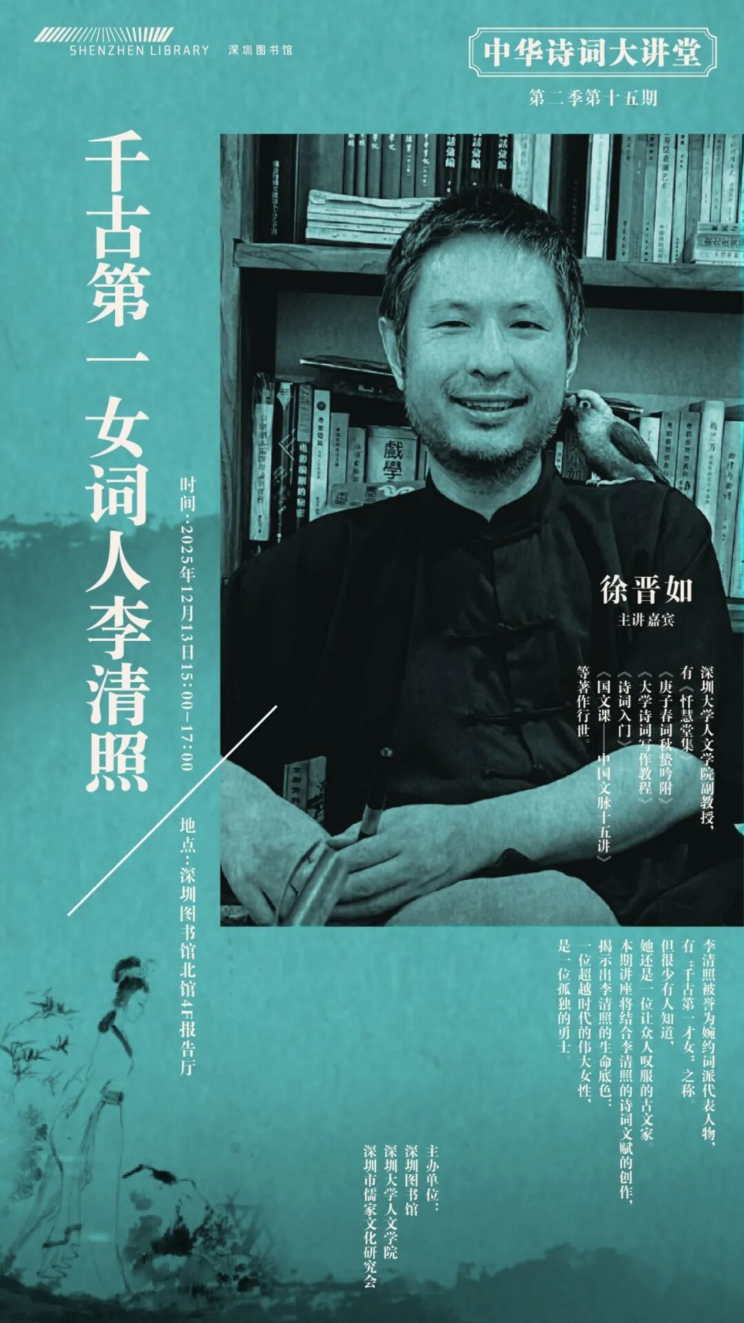 閱讀 & 講座 & 活動 | 中華詩詞大講堂丨千古第一女詞人李清照 一點存存真意,中孚萬物生生——從《周易》看現代人的身心安頓 從《大圣歸來》到《阿凡達》——神話精神與電影敘事的價值異同 跨越時空的旋律——走進音樂劇的多元世界 “臨古見真——故宮博物院古書畫臨摹復制技藝”分享會 貨郎與中國古代風俗圖畫 故事之故事《深圳實驗》作者分享 對話大家丨由文學之徑進入語文 光明大講堂丨科幻作品中的“宇宙社會學” “錦灰拾趣 八破新章”藝術工作坊 紙境創想——紙間流彩與拱券筑夢 紐扣手賬印章節 |