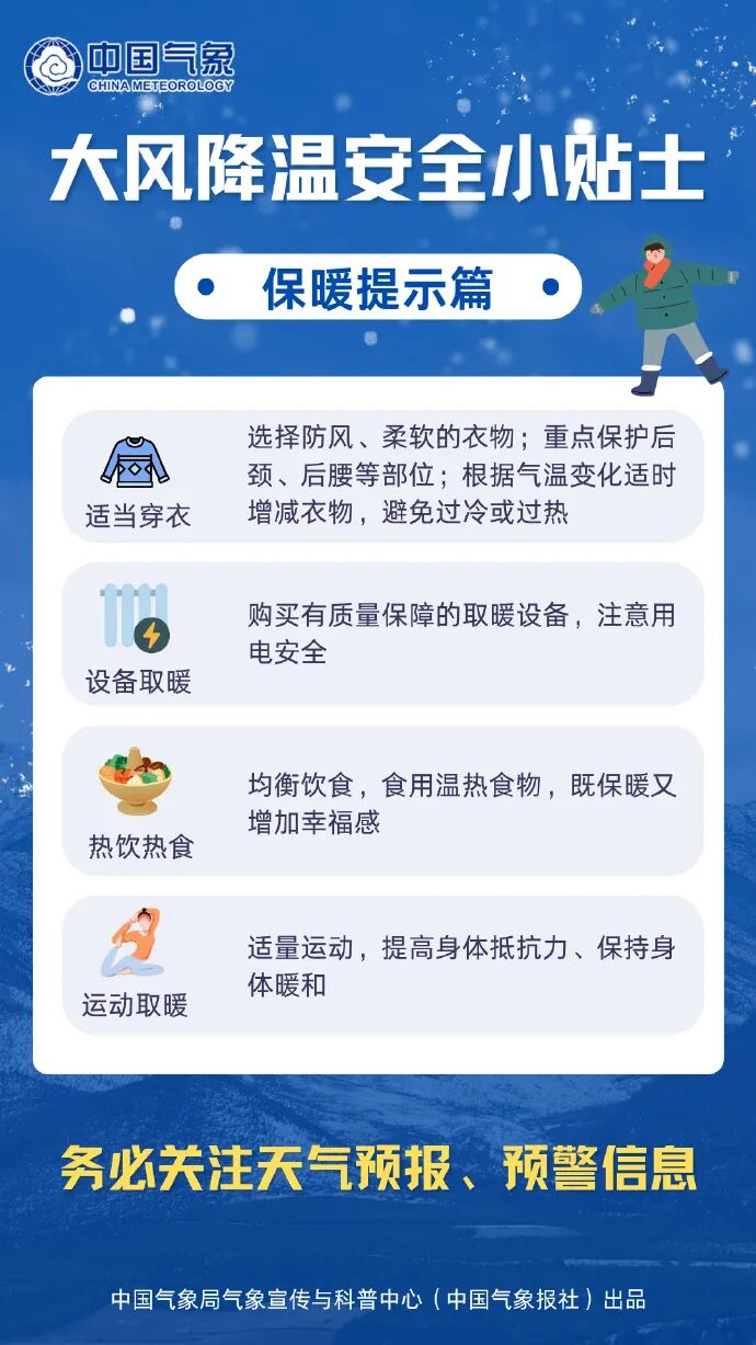 1.周末我市氣溫明顯下降,有小雨,體感陰冷,請大家外出帶傘,注意添衣保暖,特別是做好頭、腹、頸部的保暖工作;避免因氣溫變化引發感冒或誘發基礎疾病,重點做好老人、兒童等易感人群的防護工作。