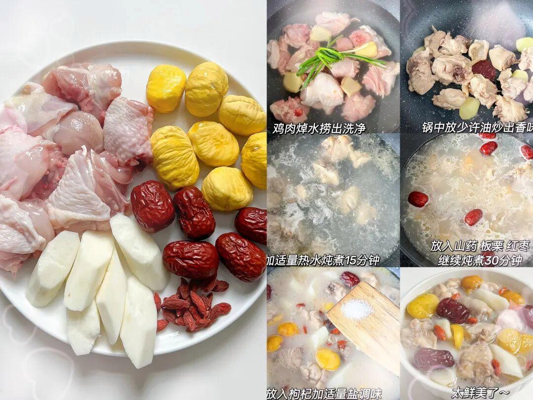 雞肉鮮嫩不柴,富含優質蛋白,能幫孩子增強體質、長力氣;板栗香甜粉糯,含有豐富的碳水化合物和維生素,能補充能量,搭配健脾的山藥,清淡不油膩,冬天吃著不上火,還能潤燥暖身,改善娃胃口差、消化弱的問題。