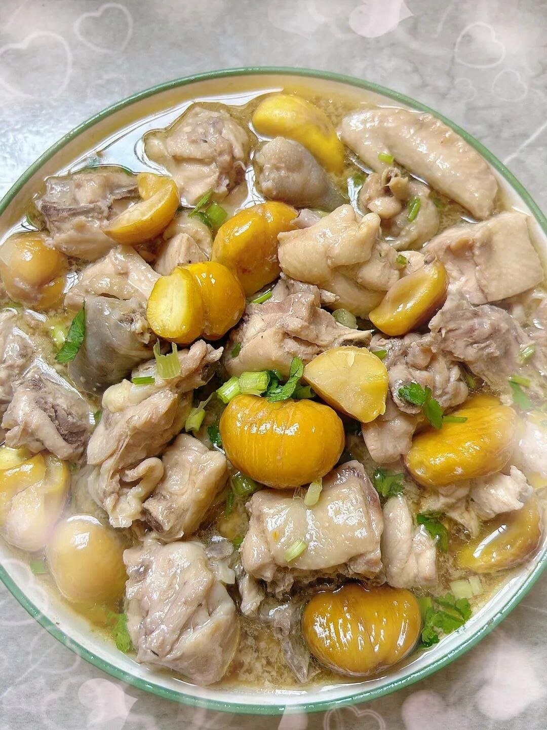 雞半只、板栗10顆、鐵棍山藥1段、紅棗5顆、枸杞少許、姜片2片。