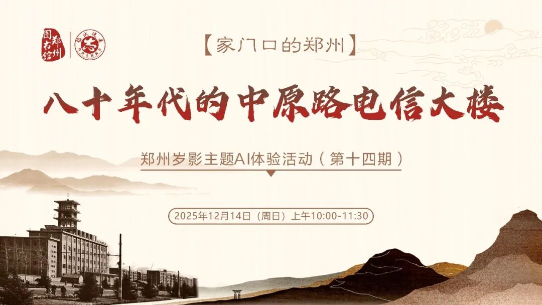 為帶領(lǐng)大家重拾這份珍貴記憶,感受AI 與生活的跨界融合,2025年12月14日上午,鄭州圖書(shū)館【家門(mén)口的鄭州】系列活動(dòng)將繼續(xù)邀請(qǐng)專(zhuān)業(yè)老師,以八十年代中原路電信大樓的歷史故事和3D打印掐絲畫(huà)制作體驗(yàn)活動(dòng),帶領(lǐng)廣大讀者沉浸式回望昔日鄭州的工作與生活場(chǎng)景。讓我們一起在光影記憶中讀懂城市變遷,在手工創(chuàng)作中定格時(shí)代溫情!