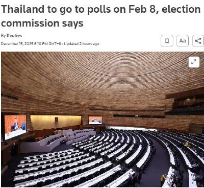 報道稱,泰國官方《皇家公報》宣布,泰國國王瑪哈·哇集拉隆功晚些時候作出批準,為提前選舉鋪平了道路。根據法律,必須在45至60天內舉行提前選舉。這一政治動蕩恰逢泰國與柬埔寨爆發激烈邊境沖突的第四天,沖突已造成至少20人死亡,近200人受傷。