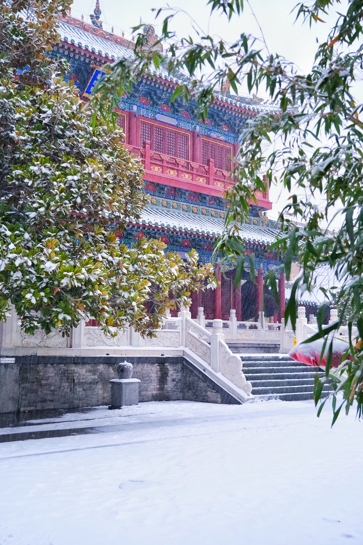 漫步鄭州文廟,銀裝素裹、靜謐怡然,別有一番情趣,宛如鄭州版“故宮”,美得不動聲色。