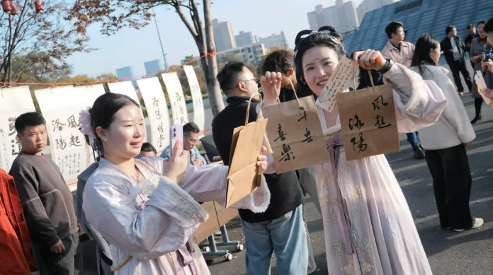 筆墨與詩心在隋唐洛陽城里遇見,一份關于青春與洛陽的情愫被全國各地的游客看見。書法家與作家在勾勒丹青時,一眾游客們在橫豎撇捺間感受漢字的筋骨與韻味,體悟書法意境的悠遠與靈動。這一刻,書法是凝固的詩,詩歌是流動的墨,它們都以極簡的形式承載最深沉的情感,書法的線條韻律融入詩句的節奏,讓洛陽的朱樓黛瓦、洛水微波,在筆墨流轉與文字凝練中交織。參與活動的作家與書法家們,以筆為媒,將對洛陽的熱愛、對青春的赤誠,化作可觸摸的溫暖。