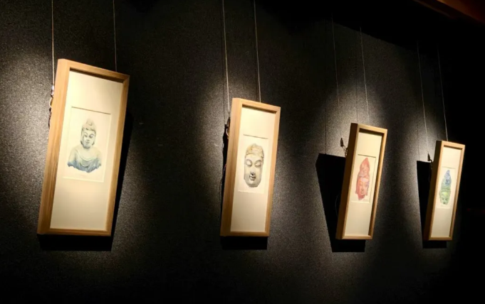 分管插畫藝委會的洛陽市美協副主席張凱表示,此次畫展,也是3位年輕同學的一次歷練。今年剛19歲的馬亞婷,年齡最小,是第一次借助這樣的平臺來展示自己的畫作。她勾勒起龍門佛首的畫作時,既緊張又興奮。緊張是沒有參加過類似這種展覽,興奮是因為自己終于有機會將作品畫出來示人了。潘珍玉、劉姝圻、馬亞婷3名年輕的美協插畫藝委會成員,為了使本次文藝賦能一舉成功,下足了一番功夫。幾位年輕的姑娘,利用業余時間,認真查閱資料,多次到龍門石窟實地寫生,經過一個多月的反復打磨,她們所呈現出來的作品,著實驚艷到了到場的所有人。而她們幾乎是沒參與事前的布展工作的。