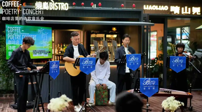 2025年9月26日下午,“文藝賦能洛YOUNG小店”計劃之詩歌音樂會,在洛龍區凝碧北街上的了了·晴山見咖啡店溫情上演。當“咖啡+詩歌+音樂”這種顛覆性創意展現在大家面前,每個人的臉上都洋溢著真誠的微笑。在場的所有人,包括活動的組織者、參與者,都有一種前所未有的松弛感?;顒舆M入高潮部分,洛陽市音協主席姬麗娜更是高歌一曲,將一首歡快的《大地飛歌》奉獻給大家,曼妙的歌聲是獻給洛陽這座城市最美的解說。