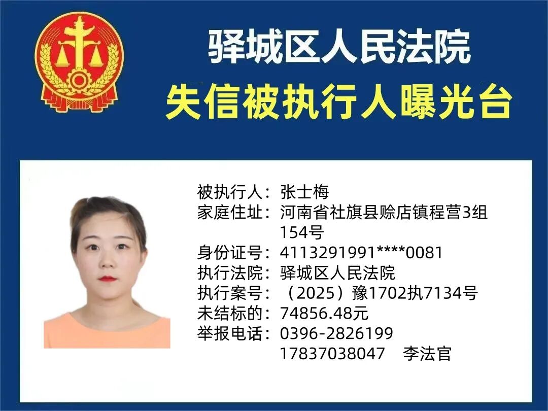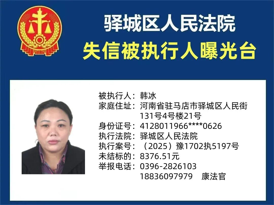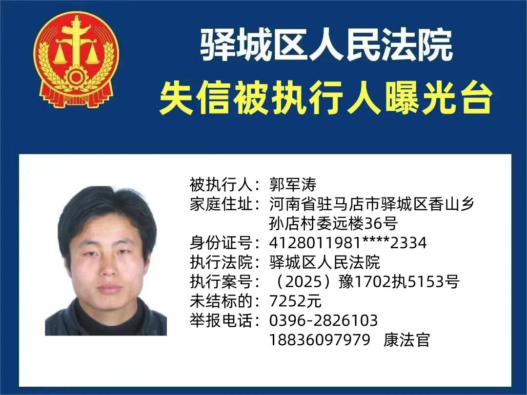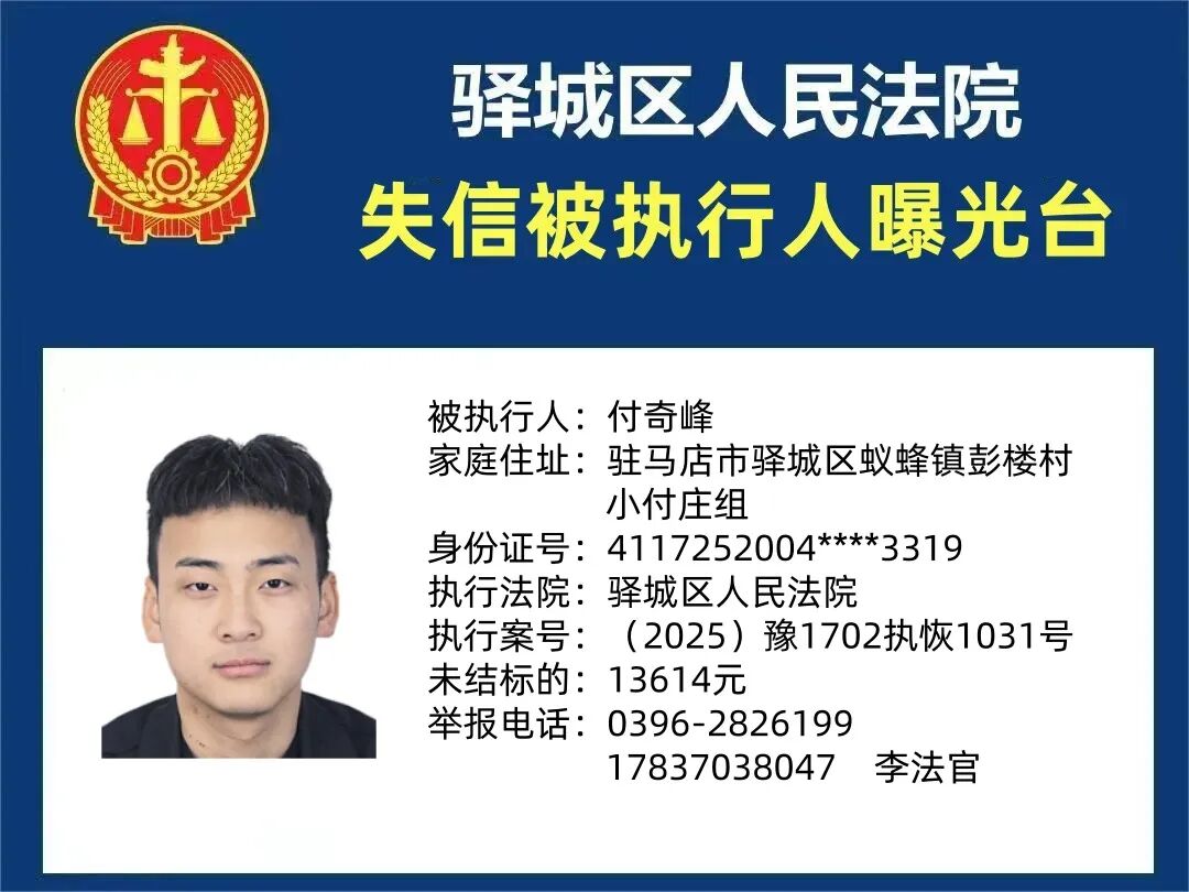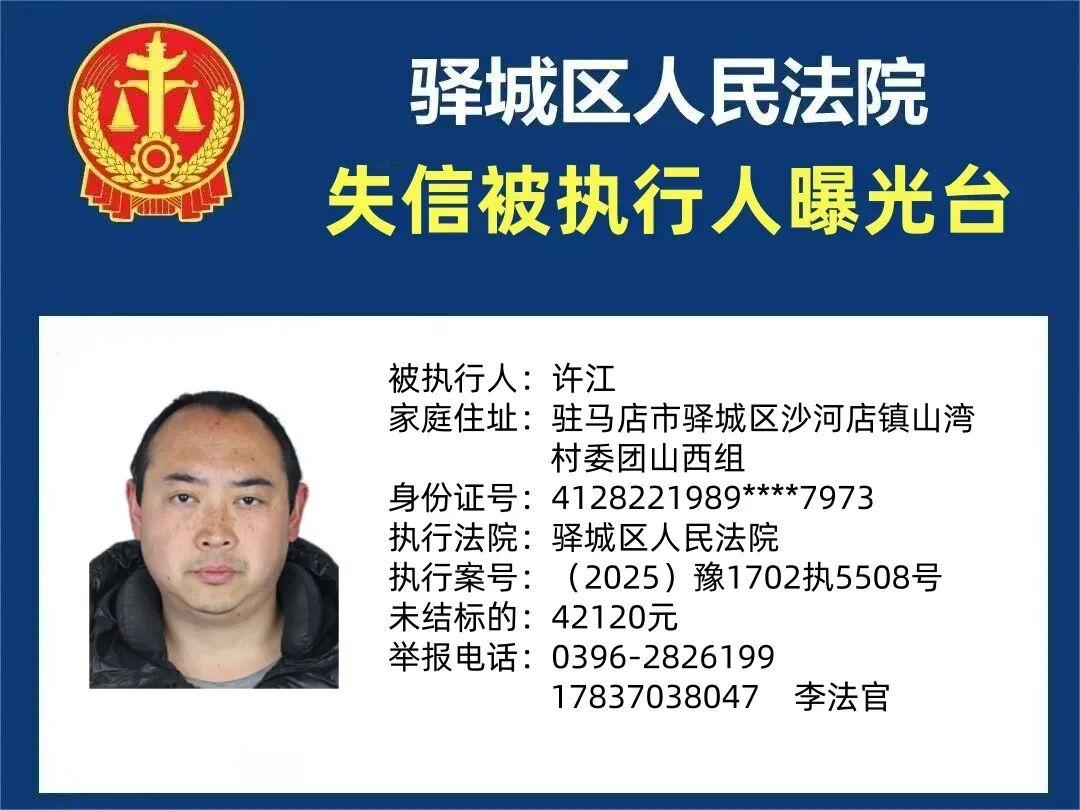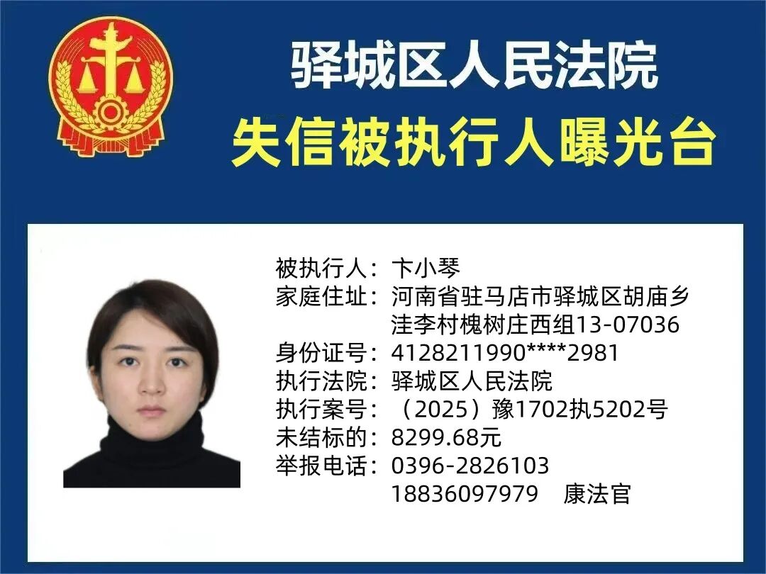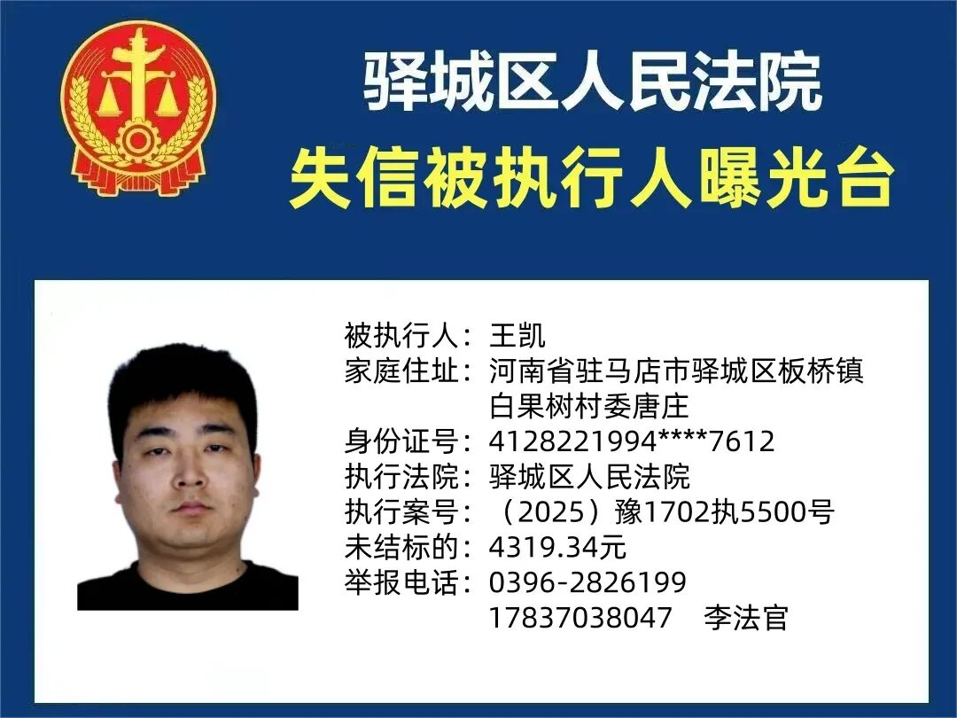 為維護(hù)法律的權(quán)威與尊嚴(yán),保護(hù)勝訴當(dāng)事人的合法權(quán)益,促進(jìn)社會(huì)誠信體系建設(shè),根據(jù)最高人民法院《關(guān)于公布失信被執(zhí)行人名單信息的若干規(guī)定》及相關(guān)法律規(guī)定,驛城區(qū)人民法院現(xiàn)對(duì)以下拒不履行人民法院生效法律文書確定義務(wù)的失信被執(zhí)行人予以公布,督促其自覺履行義務(wù),歡迎社會(huì)各界予以監(jiān)督,如發(fā)現(xiàn)被公布的失信被執(zhí)行人行蹤和財(cái)產(chǎn)線索,可向驛城區(qū)人民法院舉報(bào)反映,法院會(huì)對(duì)舉報(bào)人的舉報(bào)予以保密。