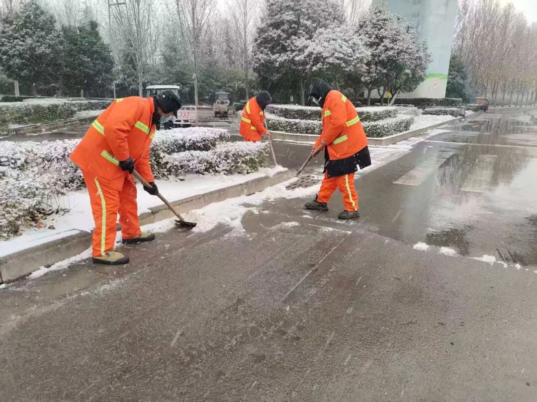 截至12日17時,洛龍區城市管理局出動人員550余人次,除雪、運雪撒布機等車輛20臺次,使用融雪劑20噸余。