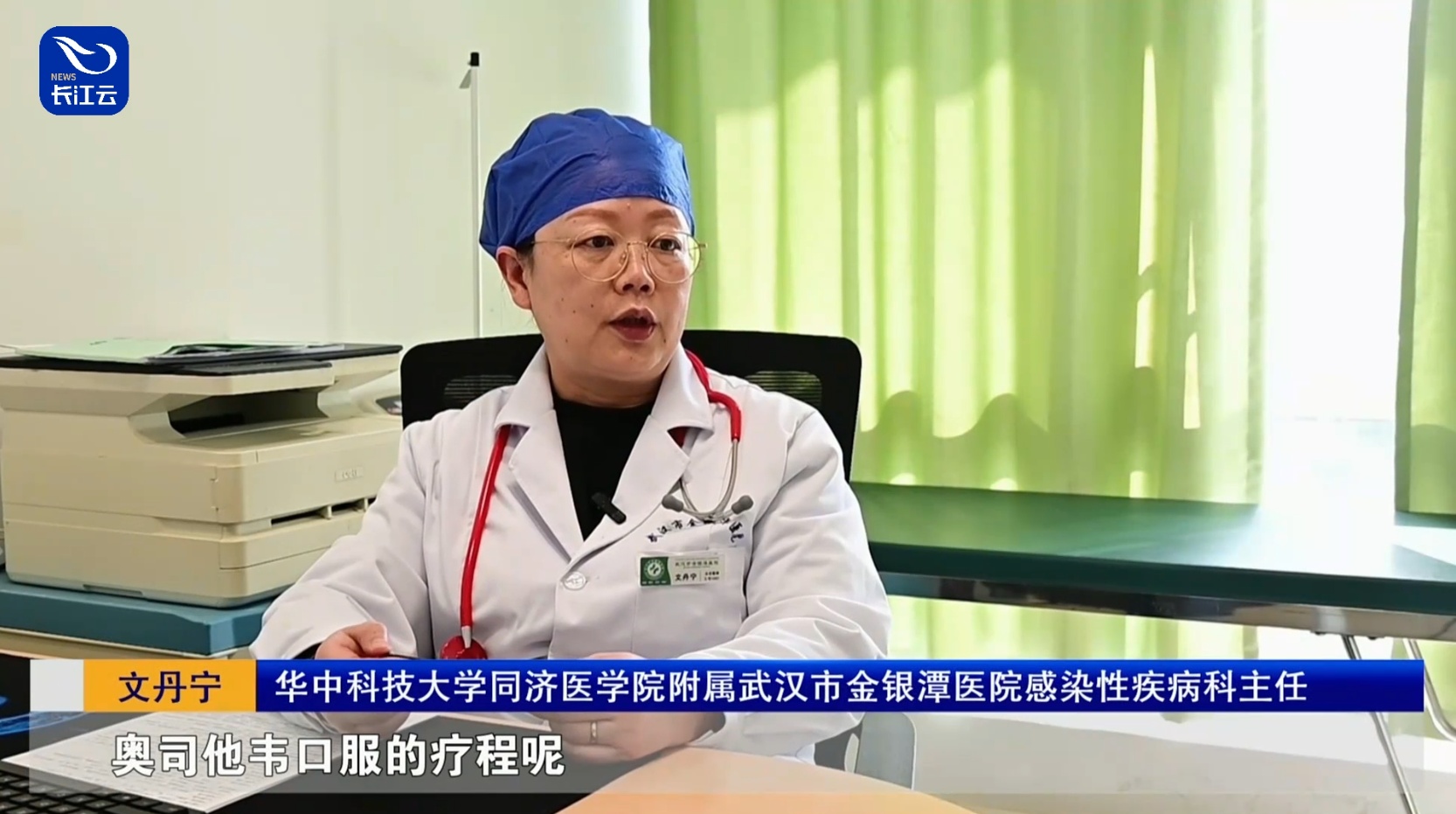 華中科技大學同濟醫學院附屬武漢市金銀潭醫院感染性疾病科主任 文丹寧:我們知道流感病毒侵入,首先是在上呼吸道,也就是我鼻腔這里,早期使用奧司他韋,就可以很好地抑制病毒復制。通俗理解為病毒的量會少,那么它的癥狀會更輕,可以很快緩解流感的一些癥狀,所以我們說抗病毒的用藥越早越好,早的話在病毒還沒有復制之前就發揮了作用,療效會更確切一些。