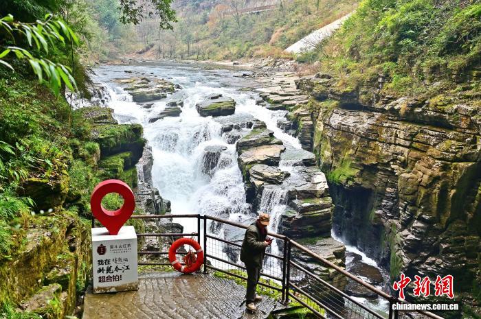 圖為游客在騰龍洞內(nèi)拍照打卡。劉康 攝