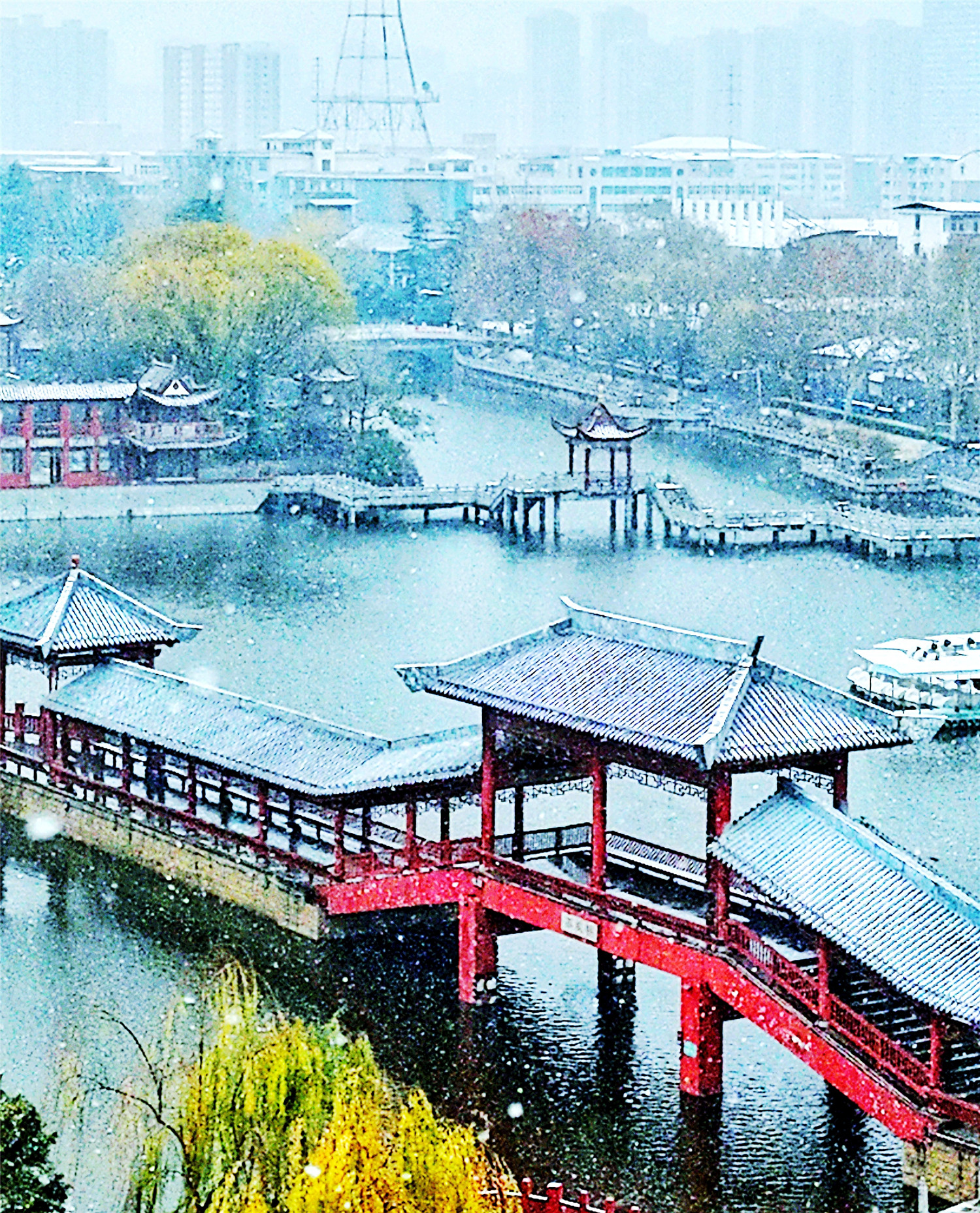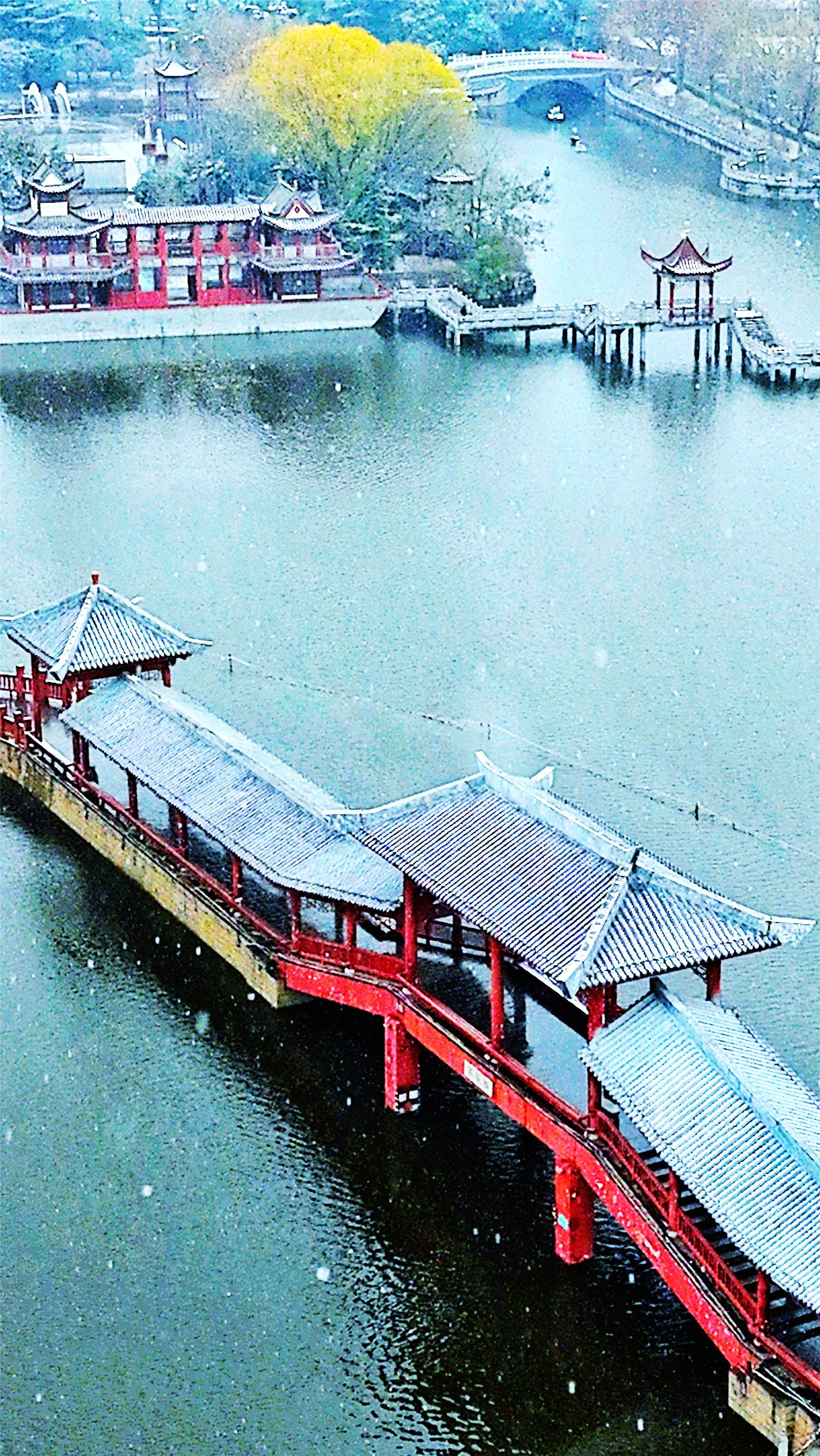 許昌初雪落西湖 一夜間夢回古蓮城!滿園銀裝宛如水墨畫