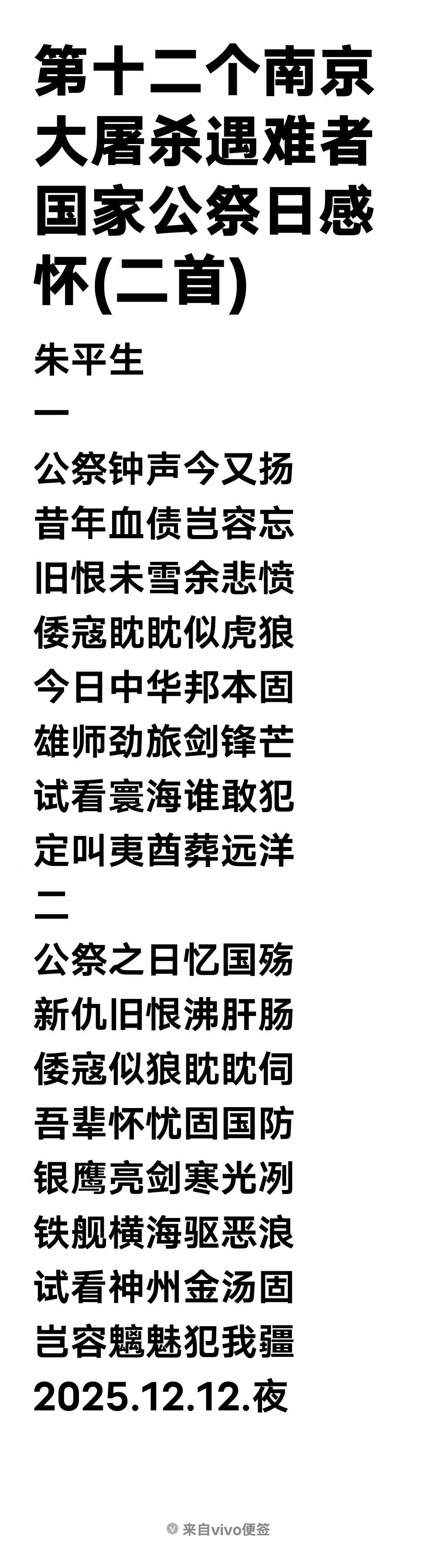 第十二個南京大屠殺遇難者國家公祭日感懷(二首)