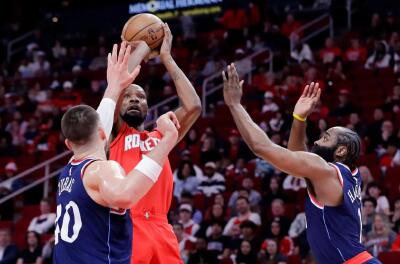 上半場,快船兩人得分上雙,祖巴茨14分4籃板,萊昂納德12分4籃板3搶斷,哈登得到9分5助攻。火箭只有申京得分上雙,他得到13分7籃板3搶斷,小史密斯9分5籃板,杜蘭特手感冰涼,7投1中,只得到3分。火箭上半場搶到26個籃板,而快船只有13個,但火箭還落后3分。