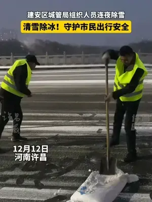 12月12日,河南許昌。建安區(qū)城管局連夜出動(dòng)80余人、10臺(tái)雪滾車清雪除冰,守護(hù)市民出行安全。(記者:張錚;編輯:李灝)