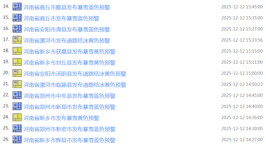 涉及暴雪、大風、道路結冰等