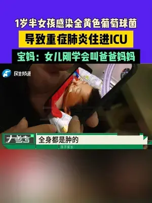 1歲半女孩感染金黃色葡萄球菌,導致重癥肺炎住進ICU,寶媽:女兒剛學會叫爸爸媽媽#媒體精選計劃